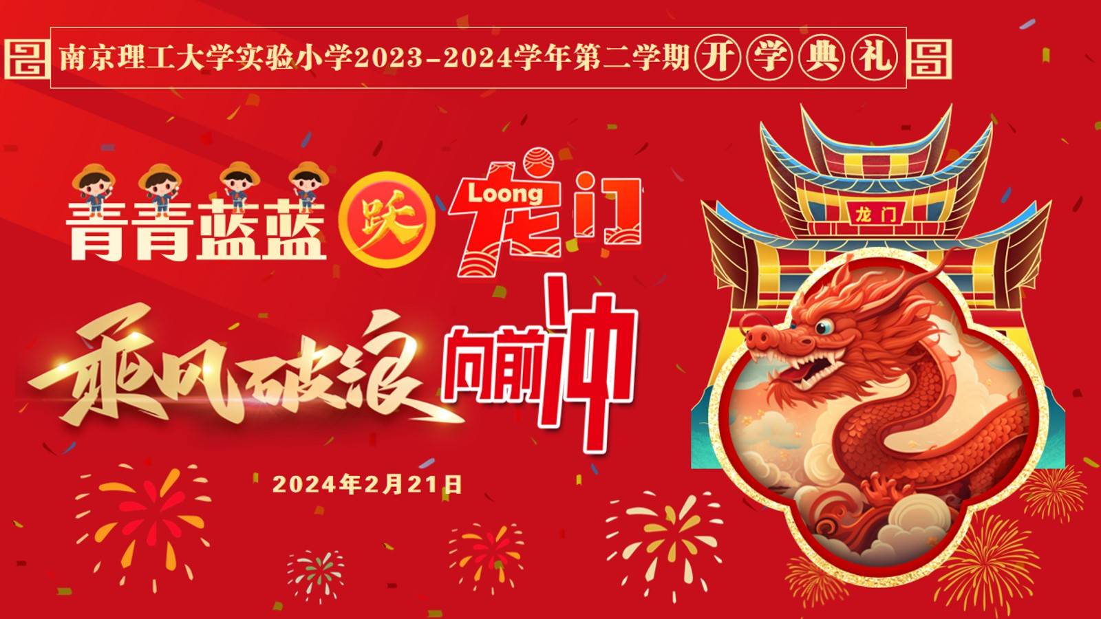 南京理工大学实验小学书记、校长李子贵在致辞中鼓励孩子们在龙年学习龙的优秀精神,做自信阳光的小龙人,做奋力进取的小龙人,在新学期的学习能够每天进步一点点,做真正的小龙人!