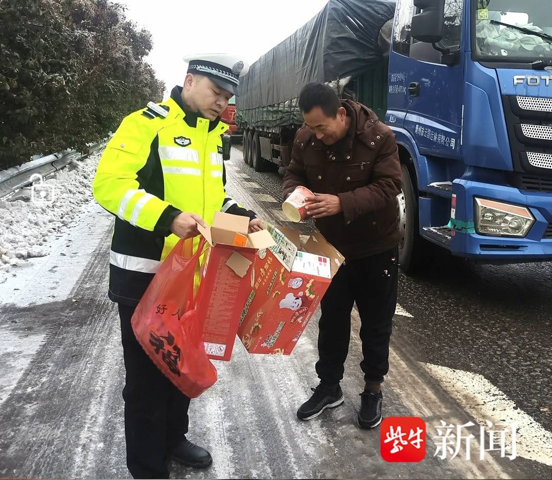 【视频】冰天雪地里,沭阳交警给滞留的司机送来温暖