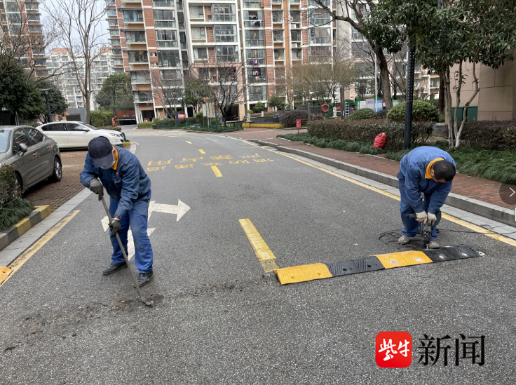 小区内的减速带经过车辆长时间的碾压颠簸和日晒雨淋,导致螺钉生锈松动存在一定的安全隐患。接到居民诉求后,红色管家立即组织维修人员携带撬棍、螺钉、榔头等工具对小区内的所有减速带进行加固和维修。小小一个举动,却为居民群众的出行安全增添了“砝码”。