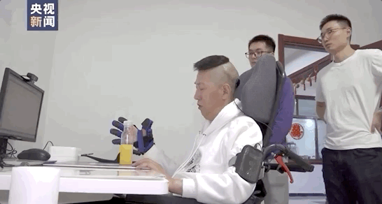 杨先生说:“你在想它(拿水瓶)的同时,就能攥上了。老幸福了,对提高生活质量有很大帮助。”杨先生妻子也对此十分惊喜,她期待随着科技进步,杨先生可以自主完成更多日常活动。