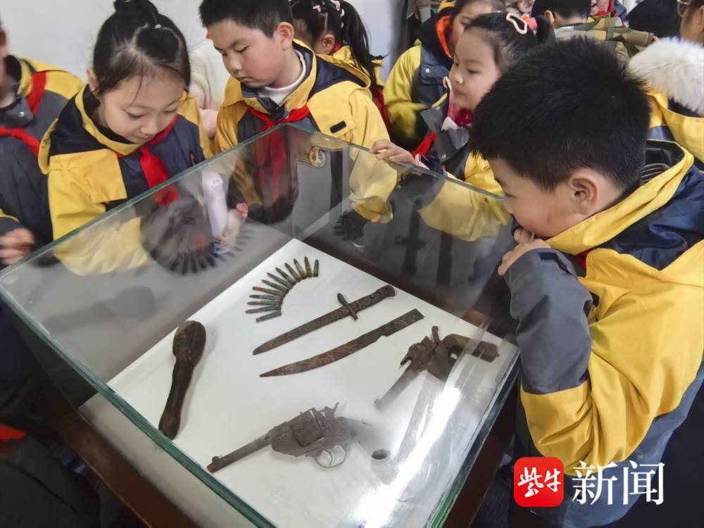 孩子们近距离参观了抗战时期新四军战士穿过的草鞋,使用过的手枪、望远镜等革命文物,“零距离”感受新四军当年浴血奋斗的英勇场景。置身其间,仿佛看到了那战火硝烟的岁月,还有冒着枪林弹雨冲锋的新四军战士......