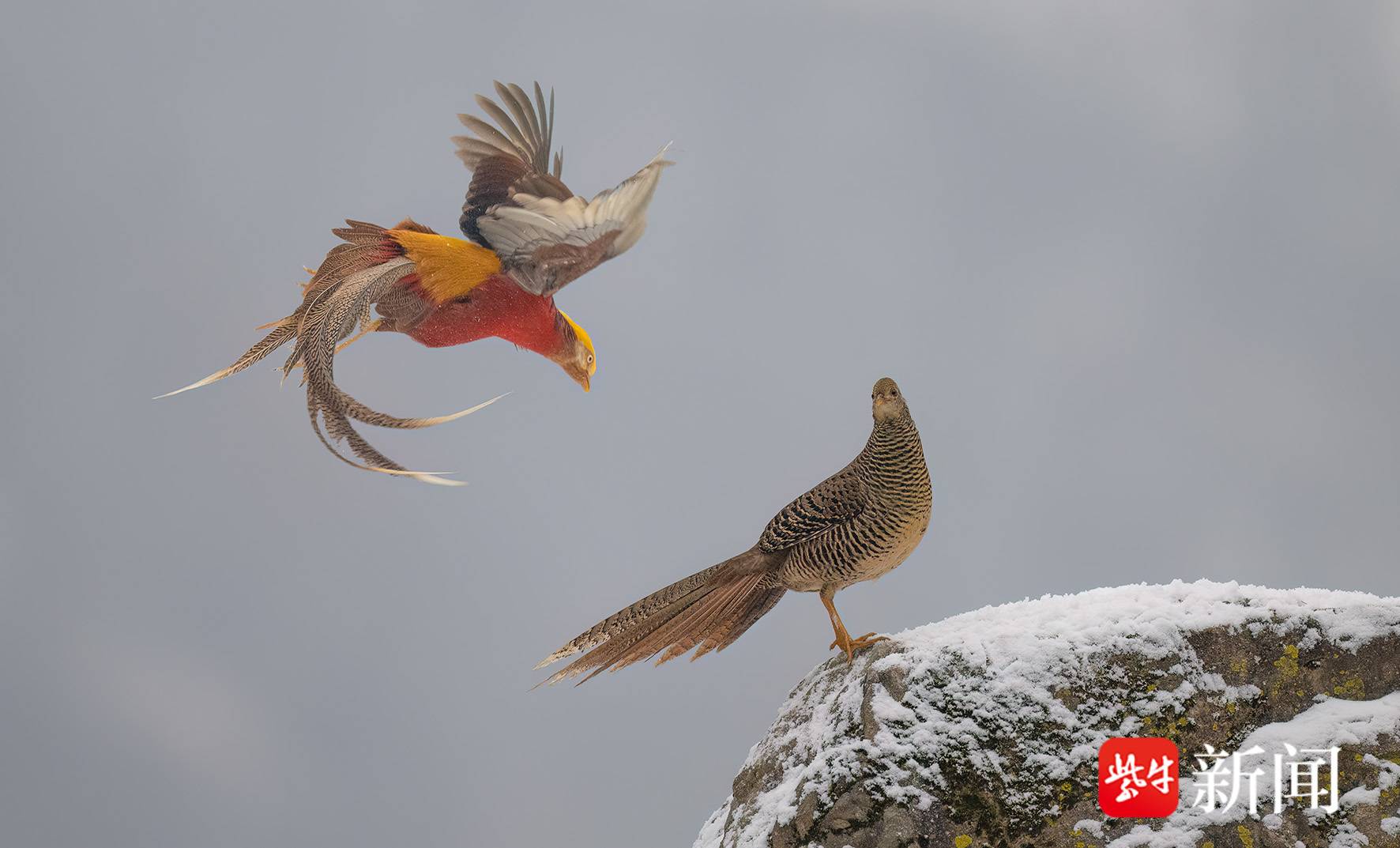近日,河南三门峡甘山国家森林公园成为了红腹锦鸡的舞台。南京摄影师驱车千里来到此地,幸运地捕捉到了这些美丽生物在雪中漫步、展翅高飞的精彩瞬间。在白雪的映衬下,红腹锦鸡的头戴金冠、身披七彩羽衣更显得光彩夺目,仿佛是大自然中的一颗璀璨明珠。