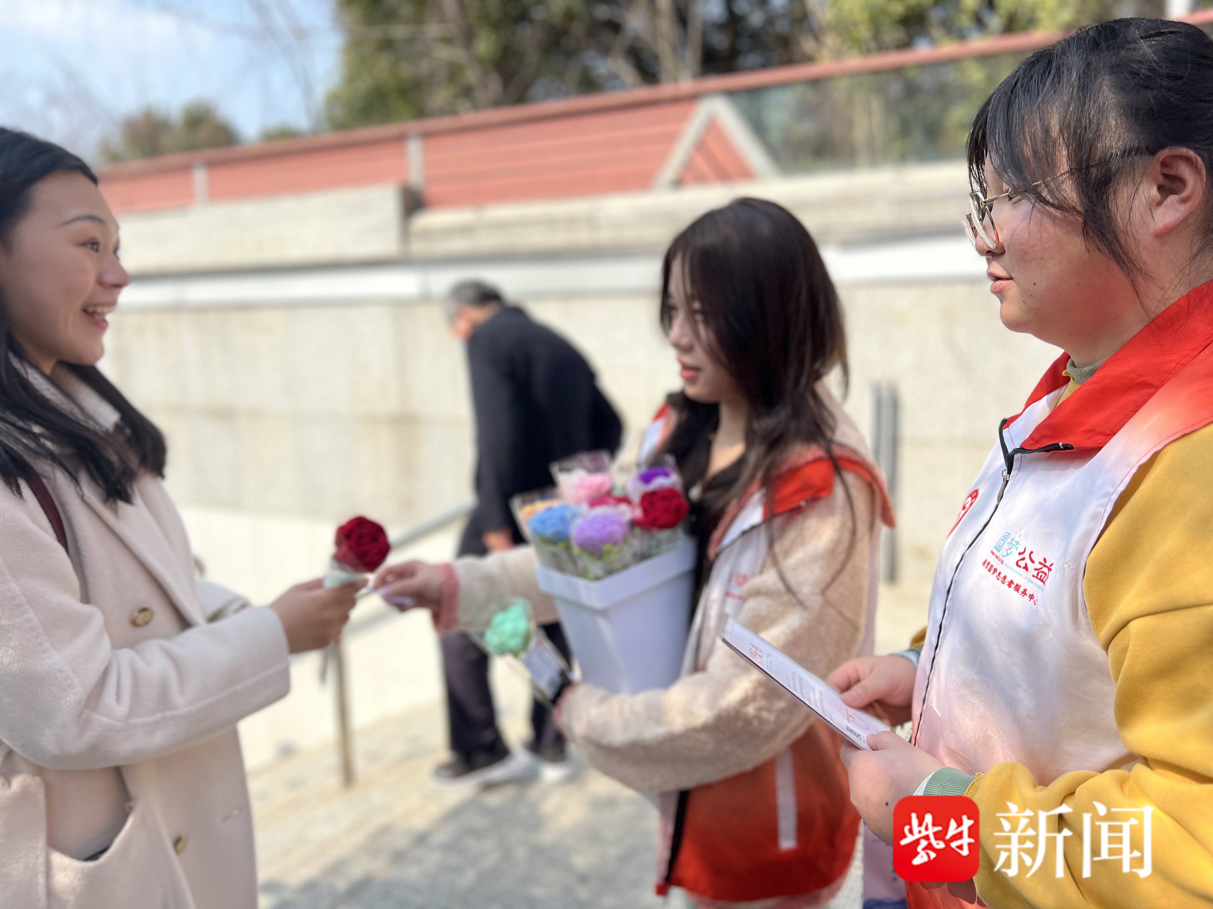 女学生争做青年志愿者,卖花所得捐赠养老院