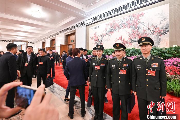 3月9日,全国政协十四届二次会议在北京人民大会堂举行第三次全体会议。图为全国政协委员费俊龙、杨利伟、王亚平(右至左)在会前合影。中新社记者 何蓬磊 摄