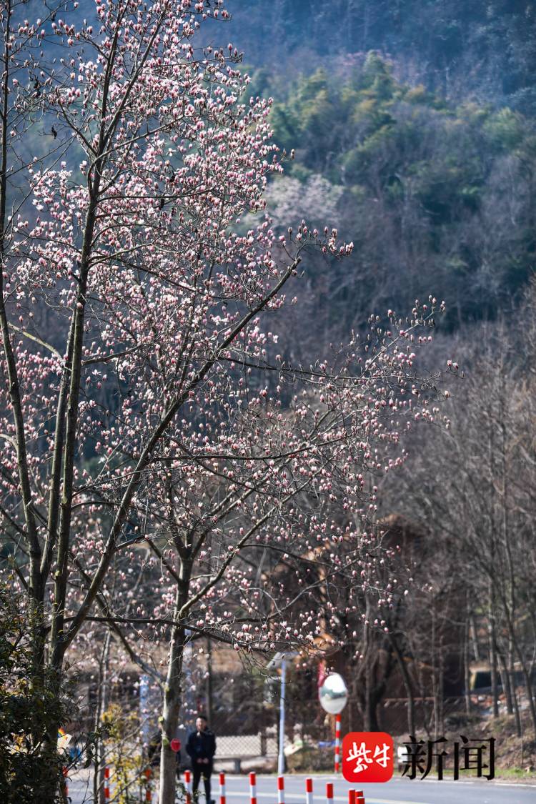扬子晚报网3月10日讯(通讯员 纪飘 志国 记者 万凌云) 春风拂面,万物复苏。这两天气温回升,句容宝华山国家森林公园的宝华玉兰竞相绽放,满树繁花,美不胜收,吸引游客前来赏花踏青,感受春天的气息。