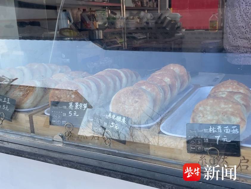 除了传统的酒酿饼,在平江路街区有一家专门做素食酒酿饼的店铺。来到店门口,复古精巧的装修便吸引了大批游客驻足。展示柜里摆放了许多不同口味的酒酿饼,有松茸菌菇、东北酸菜、荠菜冬笋、土豆……“我们这家店做了16年,都是以做素食为主,因为位于旅游景区所以游客买的比较多。素三鲜和荠菜冬笋是我们店铺的爆款产品。”店主王先生说。从福建来到苏州游玩的吴女士刚刚买了一大袋酒酿饼,“我自己本身喜欢吃牛肉就买了牛肉馅的酒酿饼,吃在嘴里甜甜的,蛮好吃的,排队买是值得的。”
