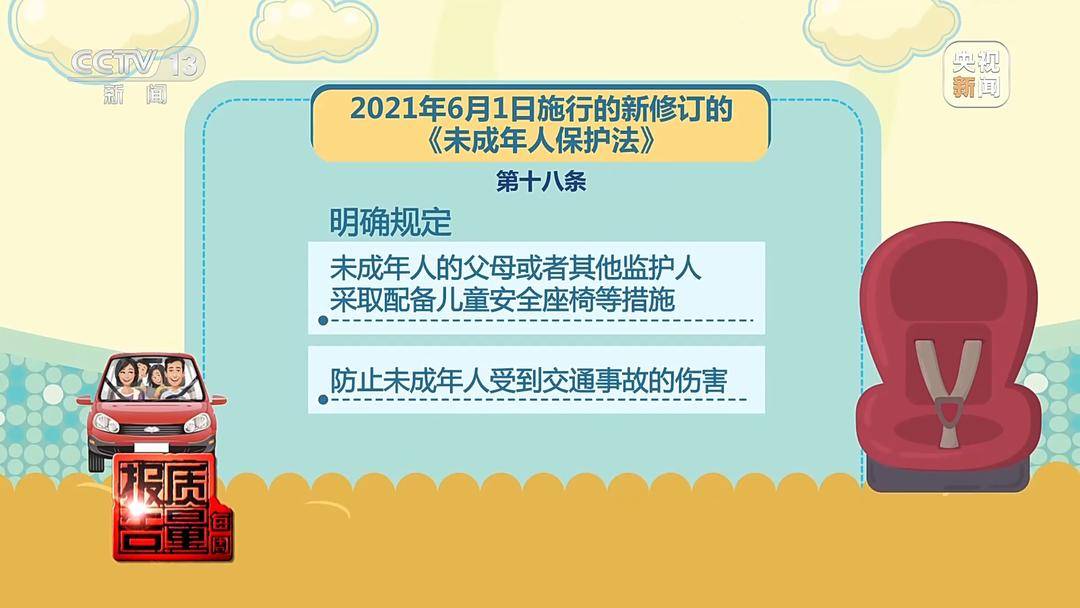 《中国儿童发展纲要(2021—2030)》明确提出推广使用儿童安全座椅。2021年6月1日施行的新修订的《未成年人保护法》第十八条也明确规定,未成年人父母或者监护人采取配备儿童安全座椅等措施,防止未成年人受到交通事故的伤害。