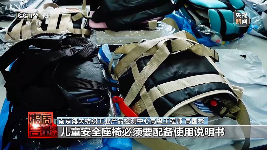 南京海关纺织工业产品检测中心高级工程师 高国彬:依照国家标准规定,儿童安全座椅必须配备使用说明书及产品上面贴有使用标识,对于儿童安全用的产品尤其重要。如果没有说明书跟标识,消费者是没有办法正确安装使用的。