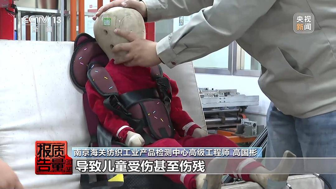 南京海关纺织工业产品检测中心高级工程师 高国彬:产品是从整个座椅上完全分离,整个假人是直接飞出撞到了前面这一个保护假人的这个网上面,在真实的车祸当中,儿童会飞出去撞上车挡风玻璃导致伤残跟死亡的。这款假人价值大概是30万元,虽然说假人是比较贵,但是就是对于我们的儿童来说,他的生命是更无价的。