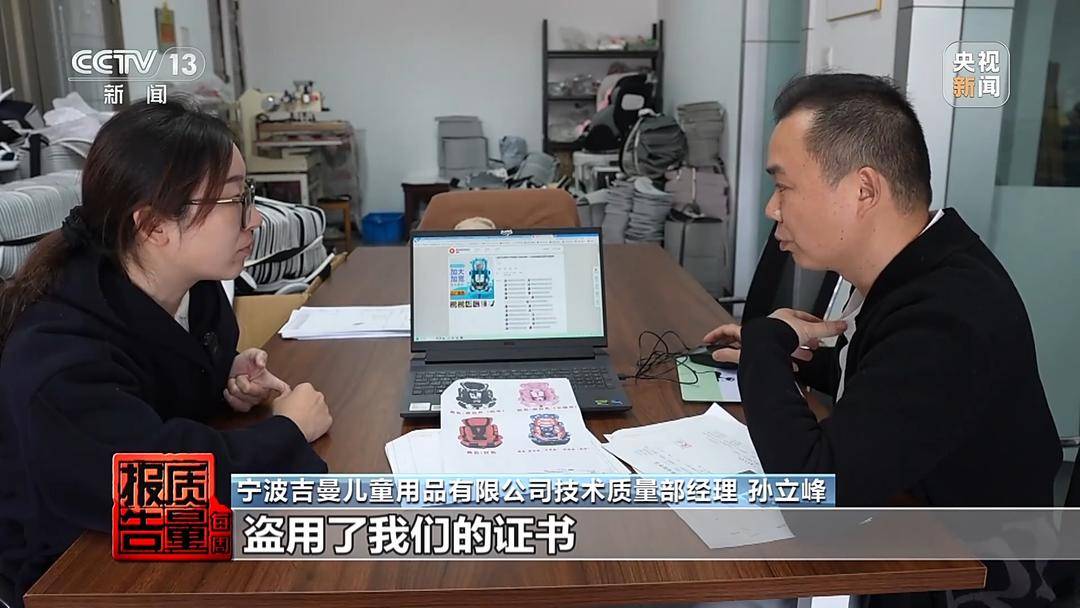 宁波吉曼儿童用品有限公司技术质量部经理 孙立峰:如果他们盗用我们的证书,说明他们的产品应该过不了安全测试。一般网店上传证书,它是没有产品照片对应的,所以他们利用这个漏洞去上传我们的证书,然后再使用他们产品的图片去诱导买家,从而达到他们的销量。