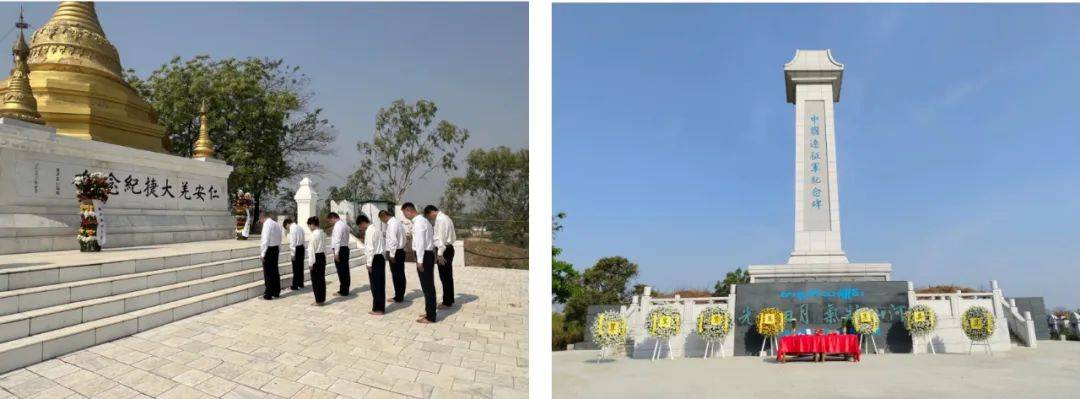 当天,受中国驻缅甸使领馆委托,在缅中资机构和当地侨社分别在中国远征军战斗过的仁安羌、密支那向远征军纪念设施敬献花篮并祭扫。