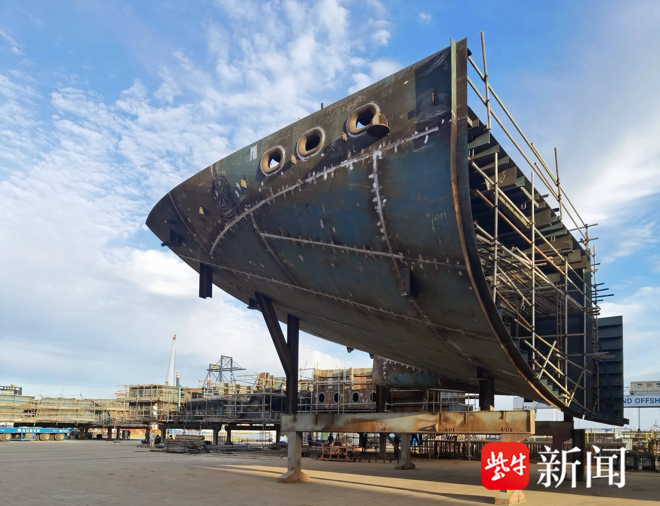 “隆隆隆......”响亮的钢铁敲击声从海边传来,走进通州湾示范区南通海拓新能源装备科技有限公司生产车间,工人们精气十足地赶工期,车间行车有序作业,电焊火花四溅,钢铁撞击声不时响起。眼下,海拓新能源负责人窦建和带领团队为海外日本川崎汽船株式会社新能源风力推进系统底座赶工等交付。(此项目为新型新能源项目,是由在海平面以上大约300米高处飞行的翼伞组成,利用风动力推动船舶,能够减少主机的负荷,可实现平均20%的燃料和排放减少,船级社为NK检验)。