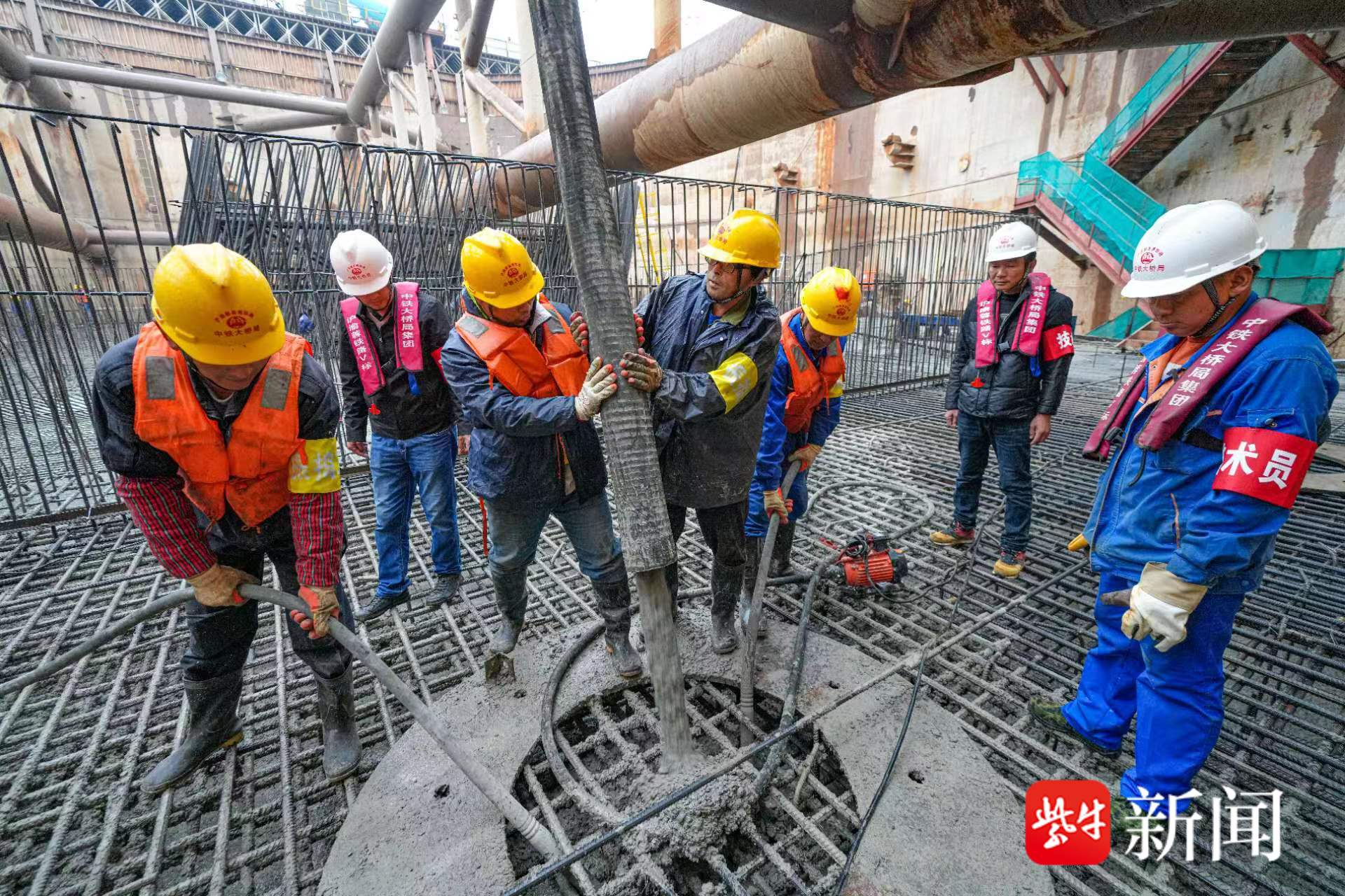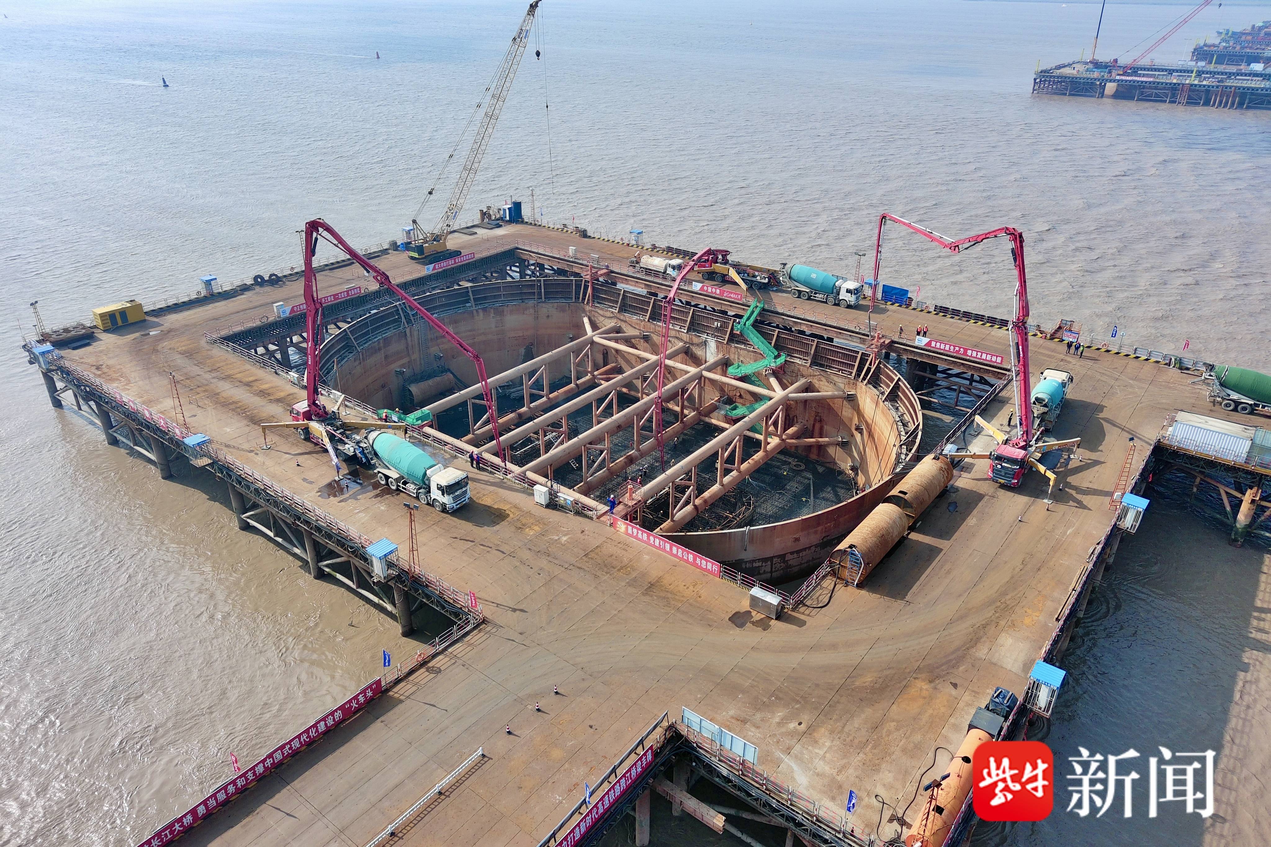 崇启公铁长江大桥双主墩承台第二层混凝土同日浇筑完成