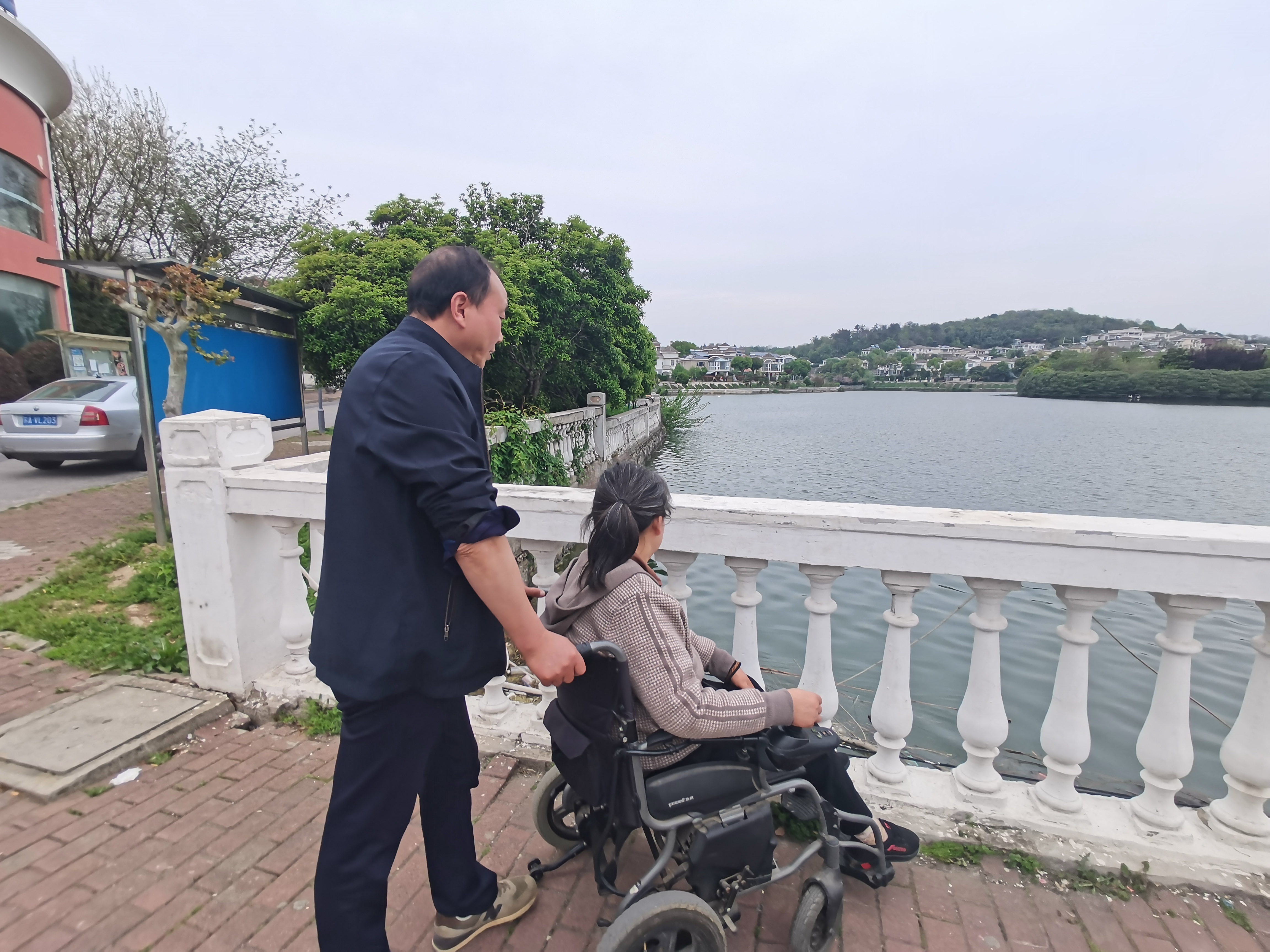 南京市江宁区锦绣花园小区里有个人工湖,几只鸭子在水面上嬉戏,微风拂面,53岁的桂先生推着妻子李女士在湖边散步,放眼望去,碧绿的水、青黛的山,空气中弥漫着春天的味道,令人心旷神怡。
