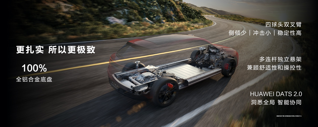 问界新M5采用华为自研HUAWEI DATS 2.0(Dynamic Adaptive Torque System,动态自适应扭矩系统)、前四球头双叉臂、后多连杆独立悬架与同级领先的全铝合金底盘,用料超下本,体验更极致。根据实测数据,问界新M5的100-0km/h制动距离为35.58m,麋鹿测试成绩提升至79km/h,为驾驶者带来更加酣畅淋漓的驾趣体验。