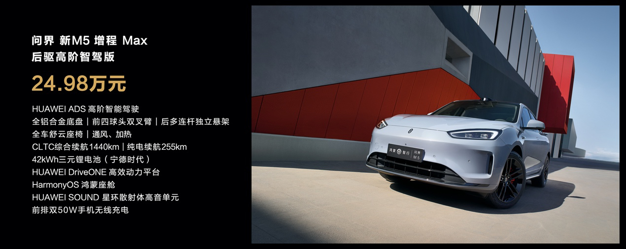 问界新M5系列售价和首销期权益已经公布——问界新M5增程Max后驱高阶智驾版24.98万、问界新M5纯电Max后驱高阶智驾版26.98万,问界新M5增程Max RS四驱高阶智驾版27.98万。即刻下定,可享受价值3.7万的选配权益,包括3000元现金优惠,赠送价值12000元选配金,赠送价值20000元城区智驾包等额抵扣券,提车后赠送价值2000元前挡风玻璃隔热膜,并将于5月15日开始批量交付。