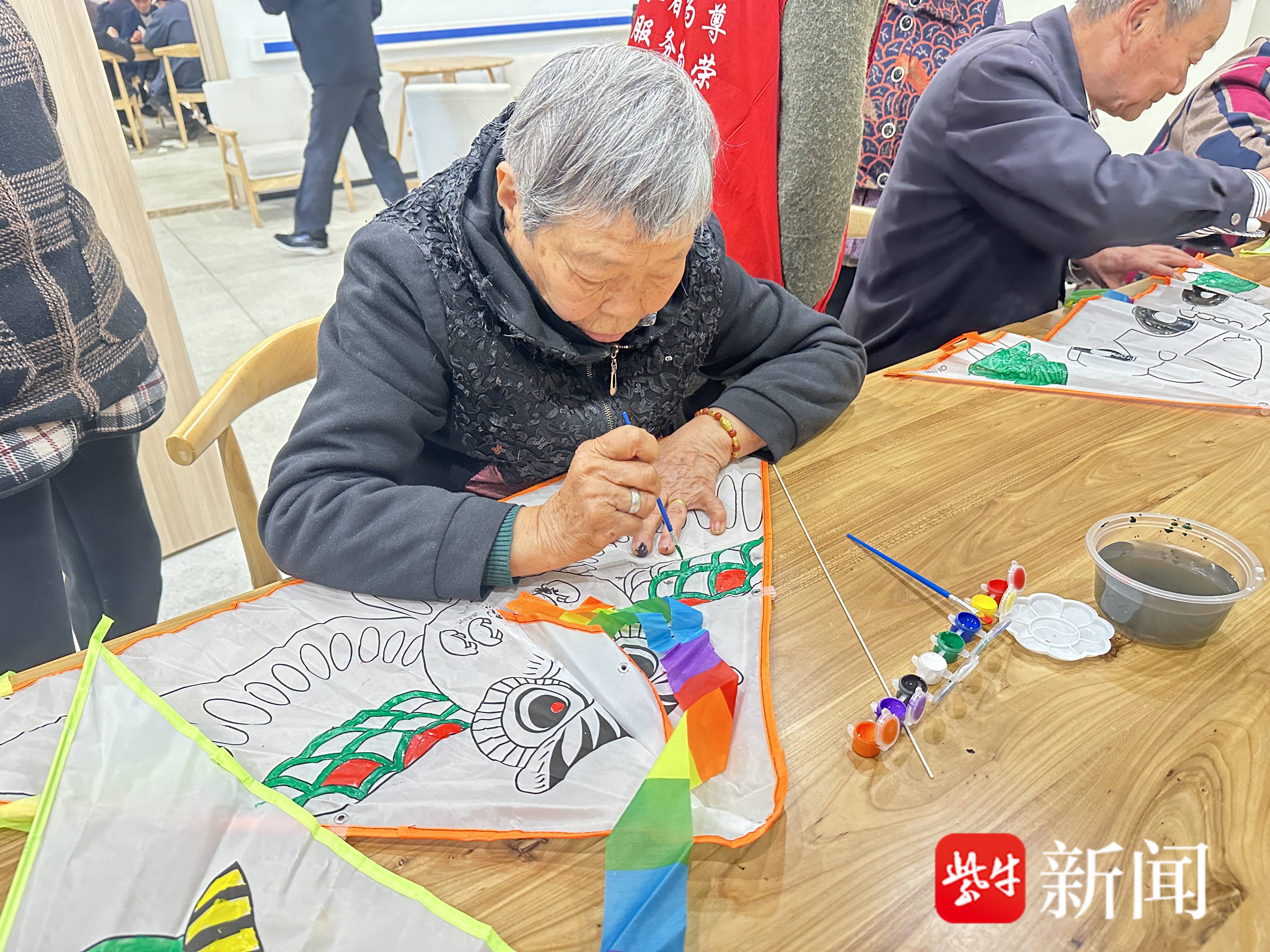 让老人体验一把手工涂色的快乐!苏州市相城区望亭镇果园社区为老人们开展了一场风筝彩绘活动