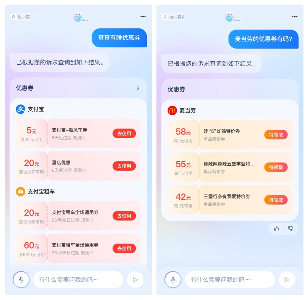 依托支付宝的商业生态,它还能迅速找到各种商家提供的优惠券、租车券等福利,出游省心也能省钱。