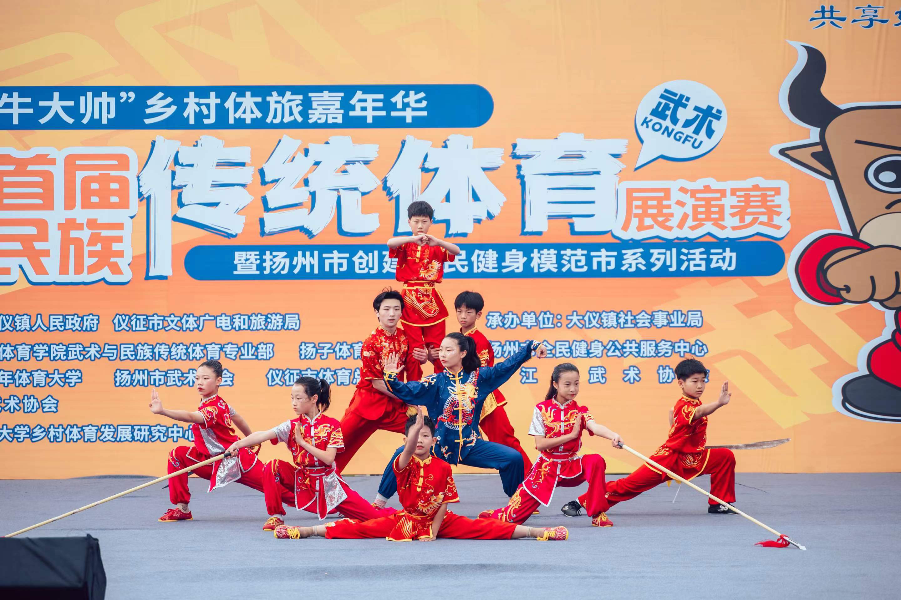5月5日,2024年“牛大帅”乡村体旅嘉年华系列活动首站“大仪镇首届乡村民族传统体育(武术)展演赛暨扬州市创建全民运动健身模范市系列活动”在扬州大仪镇举行。