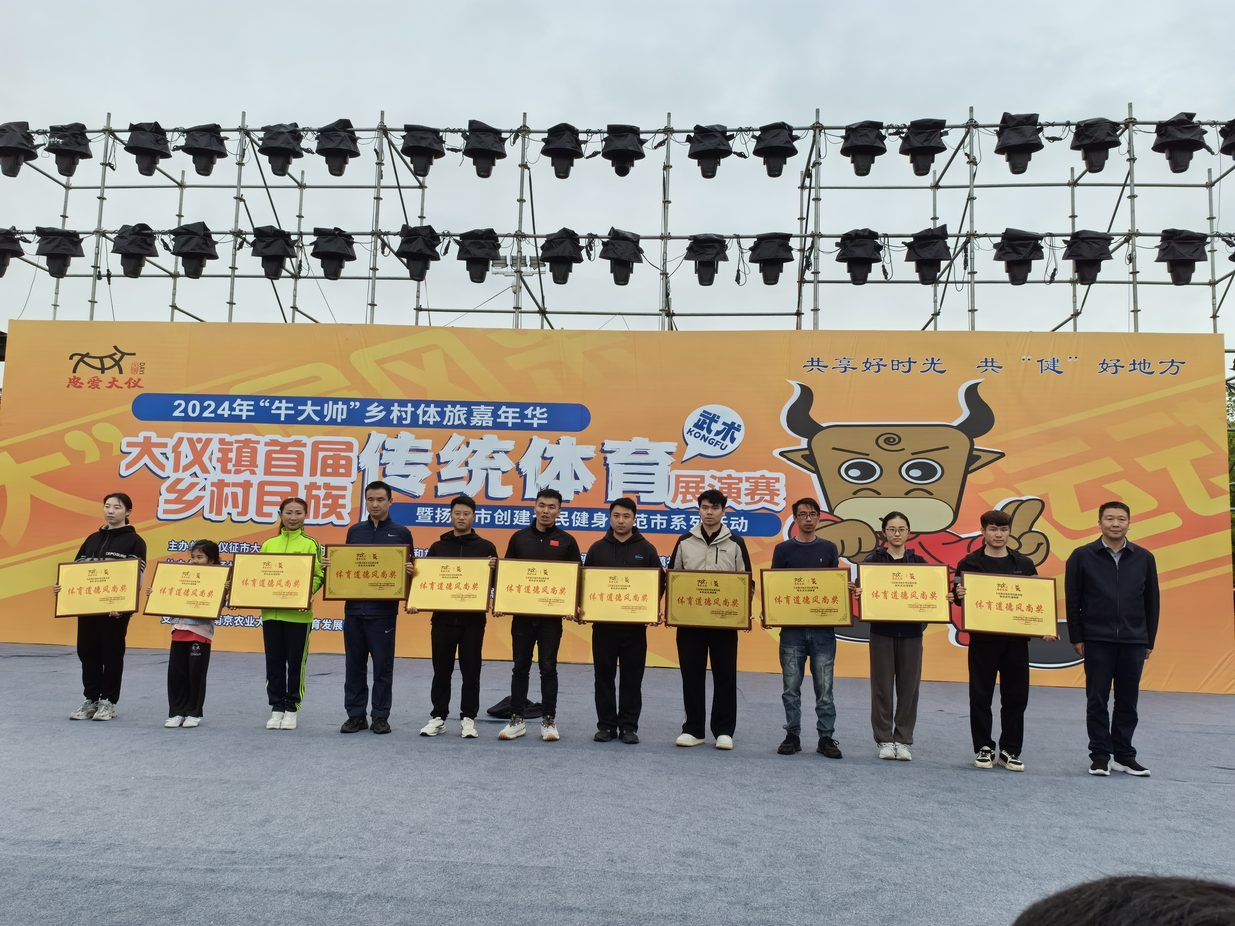“今天我们在这里举办乡村民族传统体育(武术)展演赛,就是为了弘扬民族精神,传承中华文化。” 大仪镇党委副书记、镇长陈睿表示,“牛大帅”系列活动的开展,是大仪镇推动全民健身高质量发展的重要举措,也是以体育建活力农村,打造体育助力乡村振兴的一次积极有效的探索。