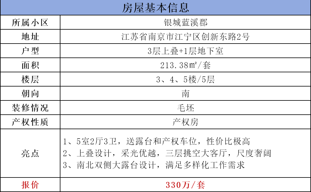 房主一家4年前在江宁买了一套叠墅——银城蓝溪郡,最近因家庭原因想把这套房子卖掉,诚心寻找有缘人。