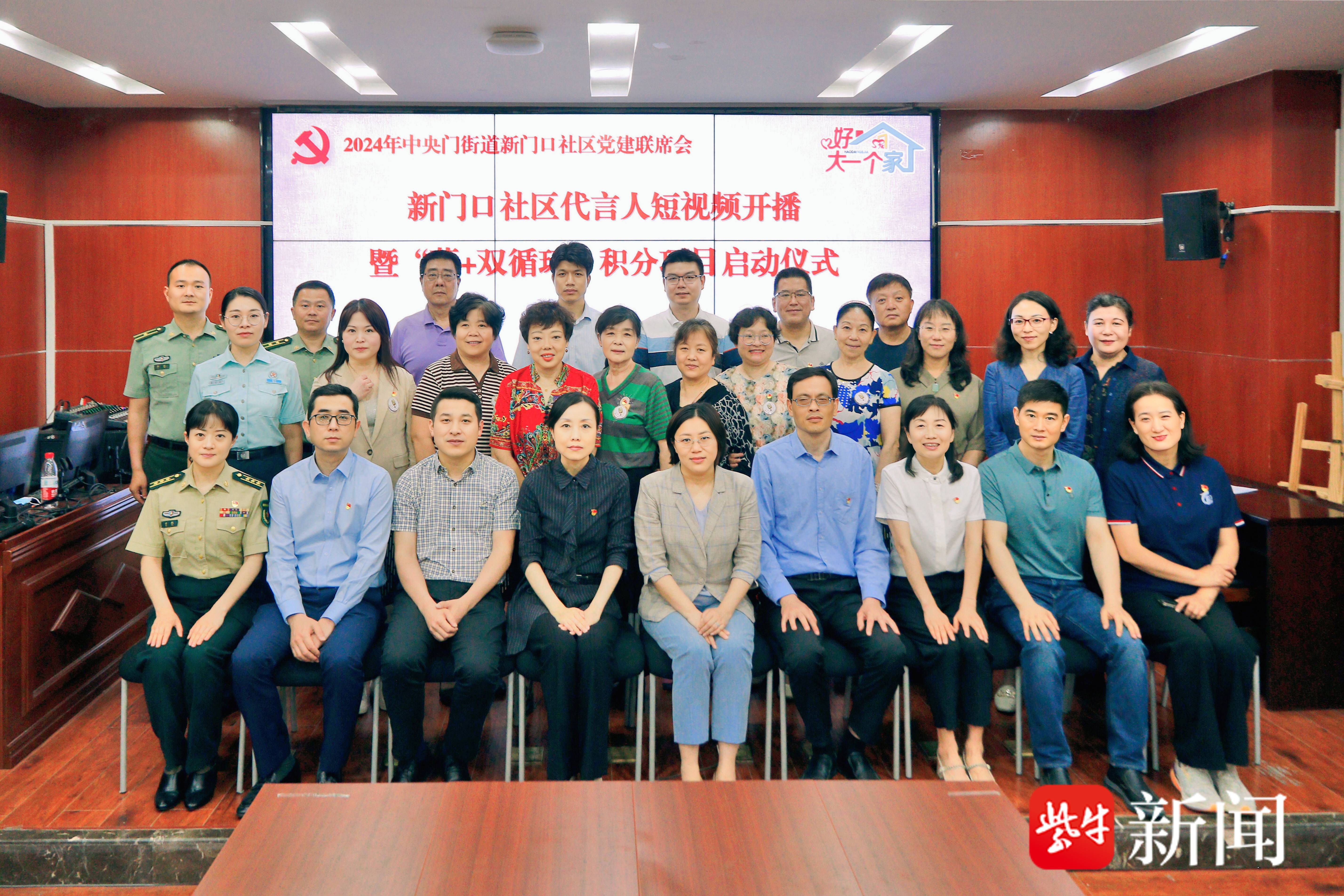 “社区代言人”授牌、社区直播间揭牌、青年社工专项案例分享、“薪+双循环”积分项目推介、共建单位项目认领……在南京市鼓楼区中央门街道新门口社区党建联席会上,不仅展现了“人人融入社区建设、人人参与社区治理”的良好氛围,受邀而来的共建单位代表、社区大党委成员代表和党员群众代表们还围绕进一步推动共建资源和自治力量深度参与,持续擦亮新门口社区“好大一个家”名片开展了充分研讨,为持续优化基层治理出谋划策、补台助力。