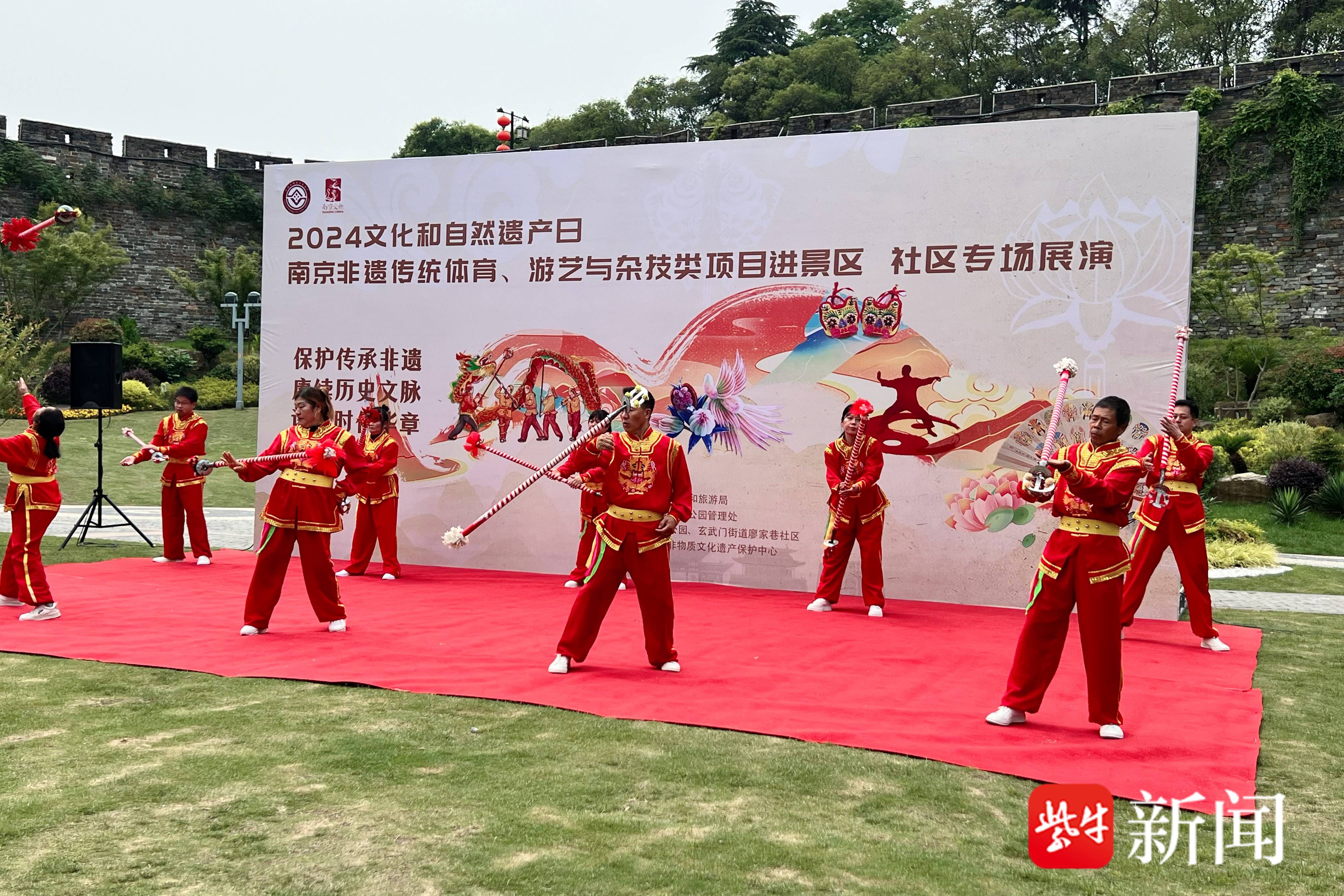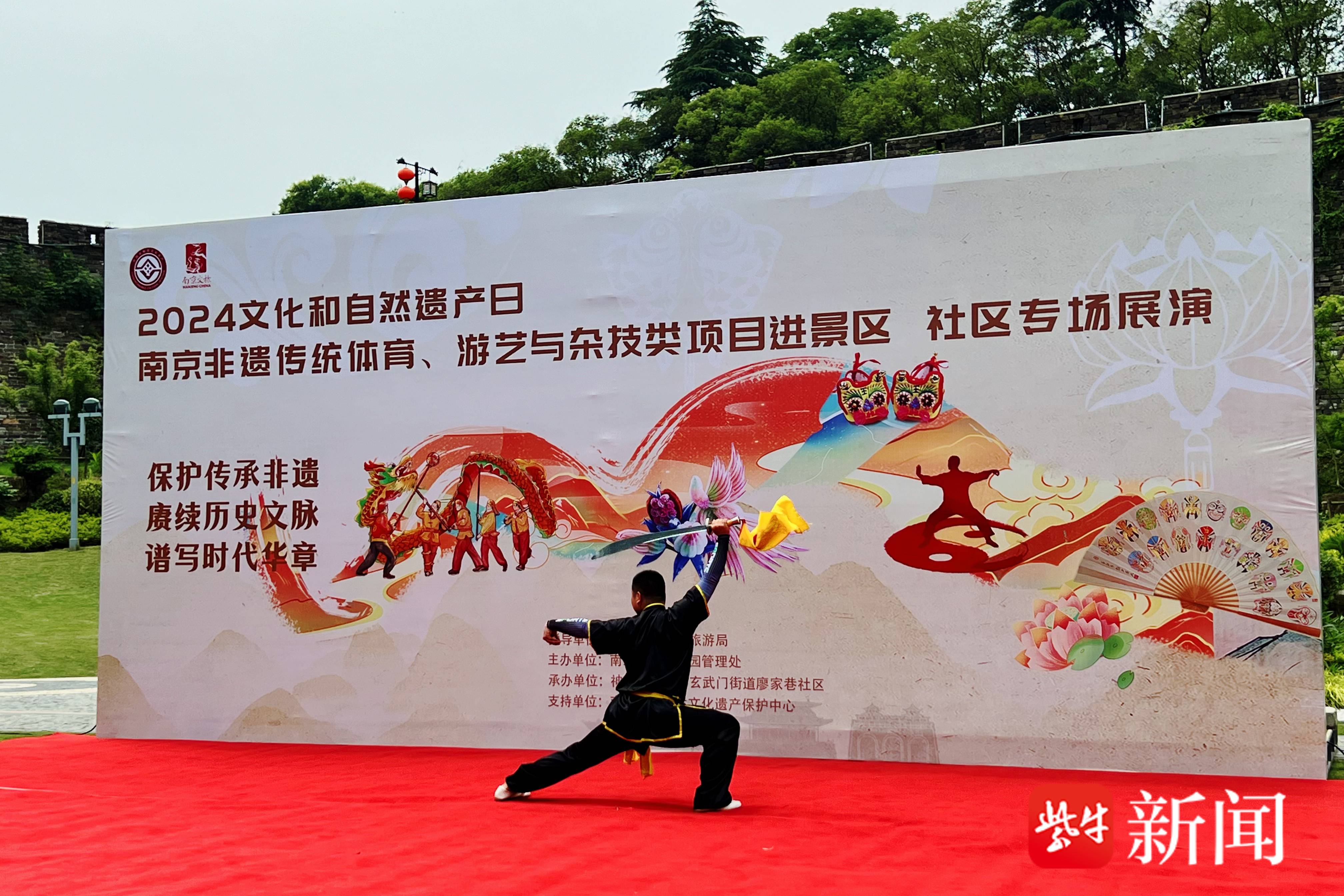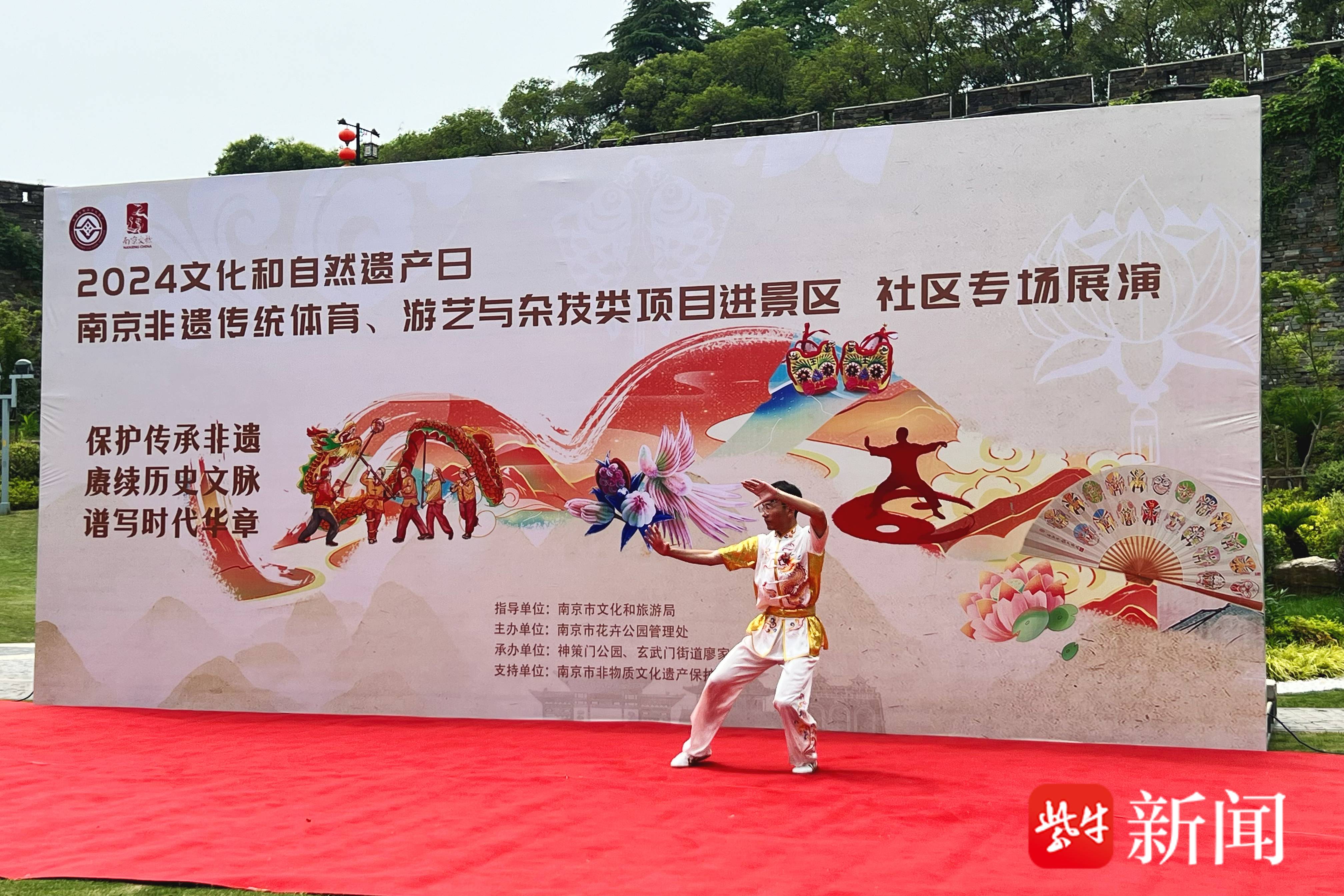 扬子晚报网6月1日讯(通讯员 乔婧芬 记者 徐昇)为宣传展示南京非遗活化利用成果,6月1日,南京市文化和旅游局在神策门公园举办“2024文化和自然遗产日之‘南京非遗进景区、社区专场展演’活动”。本次活动主题为“非遗‘运动荟’ 夏日潮起来”,让非遗与市民游客不期而遇,让生生不息的历史文脉在新时代绽放迷人风采。