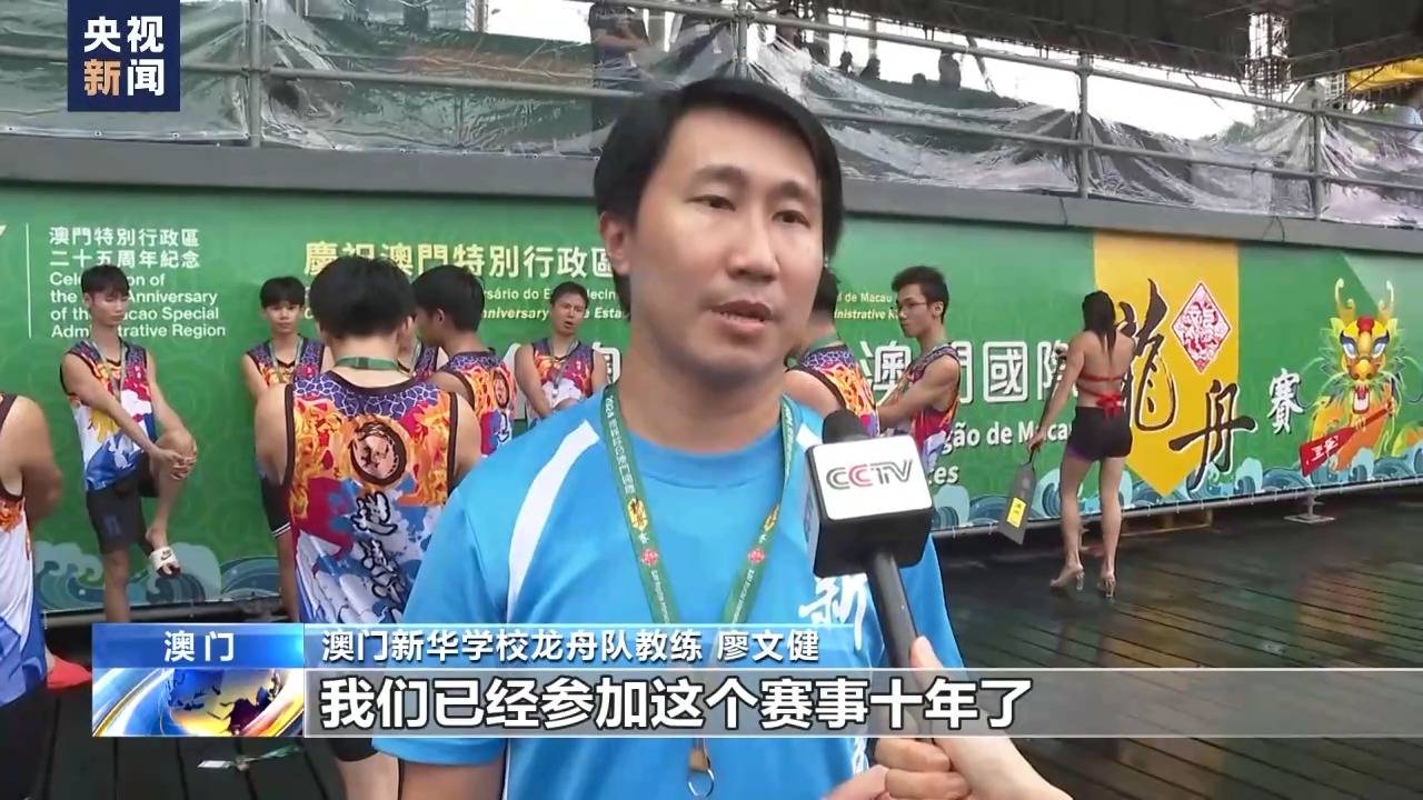 澳门新华学校龙舟队教练 廖文健:我们已经参加这个赛事十年了,学生们对参加龙舟比赛非常有热情。龙舟赛不单是速度和力量的比拼,也是团结的比拼。