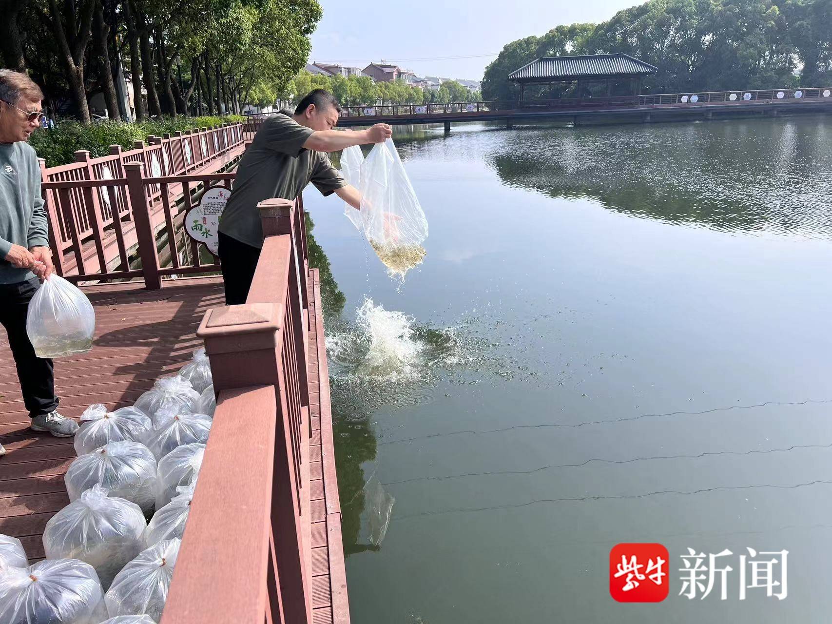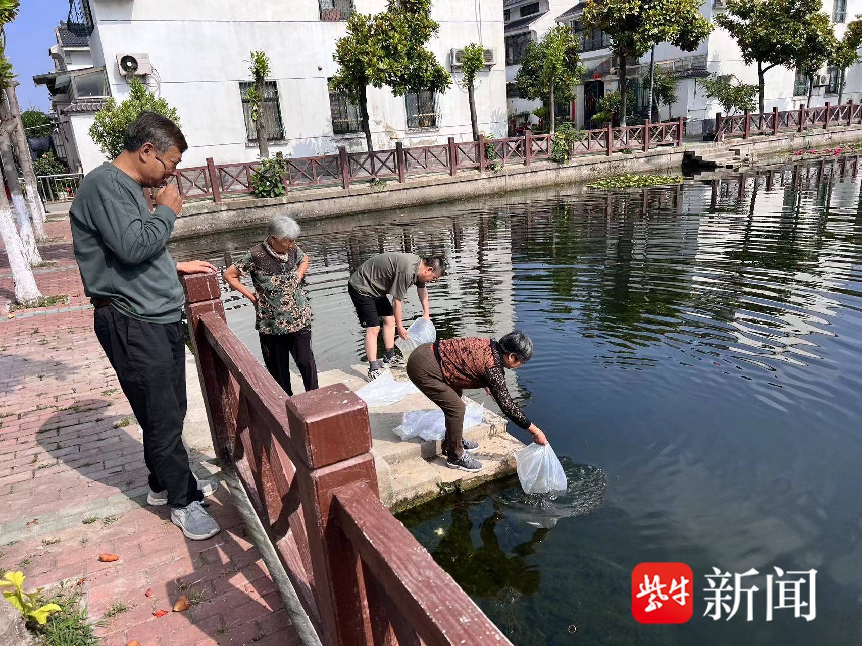 “放鱼养水,以鱼洁水”,常熟琴川街道梦兰村开展放养鱼苗净化河道护河行动