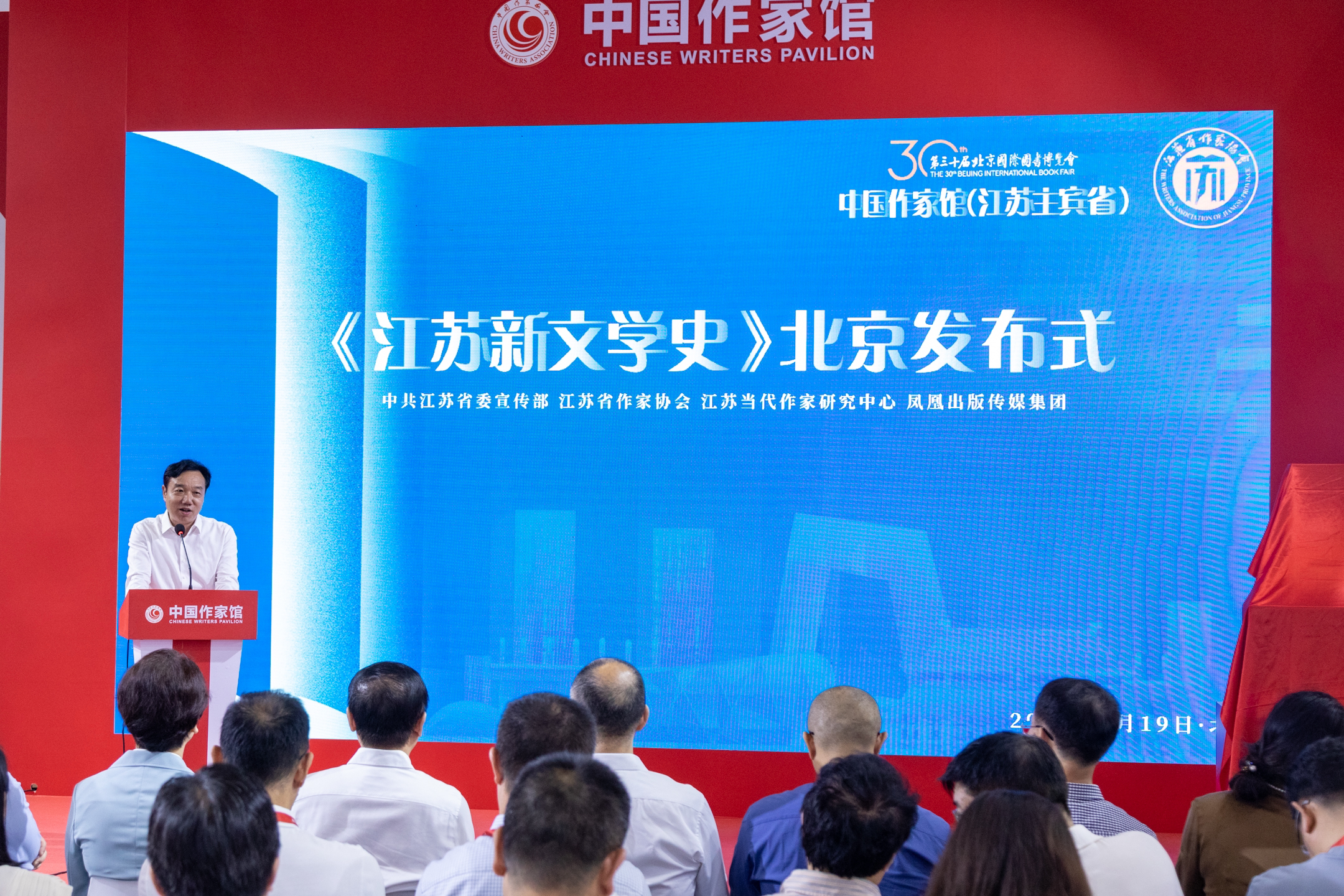 “中国作家馆”开馆后,《江苏新文学史》发布会在该馆举行。作为江苏文化建设的一项重要工程,《江苏新文学史》由中共江苏省委宣传部批准立项并直接指导,江苏省作家协会负责组织协调,江苏当代作家研究中心负责统筹编撰,江苏省内高校、研究机构等单位60多位在全国有影响的老中青专家学者参与。《江苏新文学史》12编30卷已完成出版,配套编辑的《江苏新文学史史料选》40卷约1300万字。当天下午,还举行了《江苏新文学史》学术研讨会,中国作协副主席阎晶明、中国当代文学研究会监事长孟繁华、中国人民大学教授孙郁、北京师范大学教授张清华等多位专家学者就《江苏新文学史》进行了研讨。