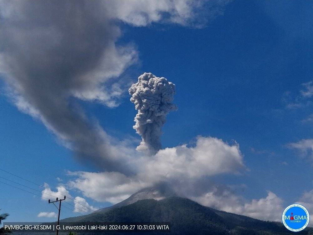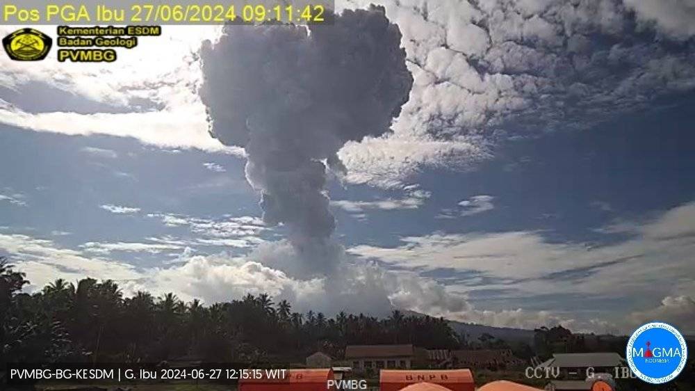 印尼地质研究机构发布消息称,当地时间6月27日9时06分,印度尼西亚伊布火山发生喷发,火山灰柱高达4000米,喷发持续约180秒。