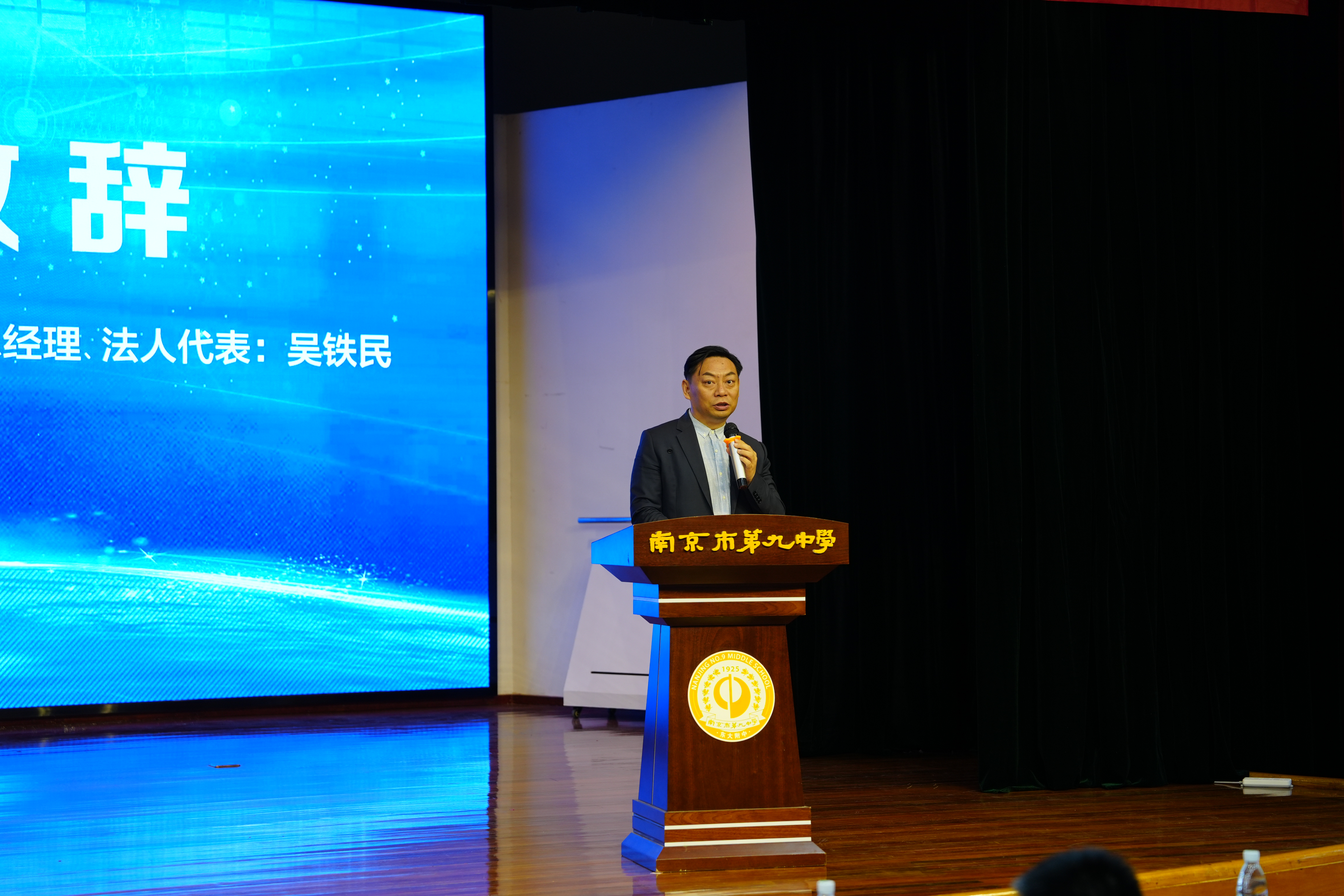 省政协委员、德基集团有限公司法人代表吴铁民是九中1994届校友,也是学校1988届校友、九中南京校友会会长吴铁军的弟弟。活动现场,他深情回忆了自己在九中的求学时光,表达了对母校培育之恩的感激之情。“九中即将迎来百年校庆,此次捐赠图书馆的计划,也是我们对九中百年校庆的一份贺礼。它不仅是一座建筑的落实,更是我们对教育事业的热爱和担当的体现。”吴铁民在致辞中表示,“我相信这座图书馆不仅仅是一座建筑,更是一个教育平台,一个激发思考、启迪智慧、增进交流的场所。我们希望它成为九中师生的学习研究交流的新平台,成为探索知识追求真理的新基地。我相信这座图书馆也将成为九中校友们的共同的记忆,成为我们连接过去和未来的桥梁。我们希望通过这次捐赠的活动,能够为九中的未来发展注入新的活力,为九中的百年辉煌再添一笔。”