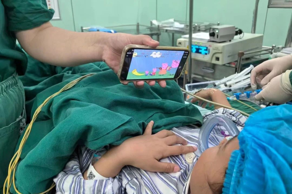 原来,蕊蕊因腺样体肥大和鼻出血需要手术。起初,蕊蕊还很腼腆听话,然而一进到手术间,便突然紧张地大哭起来。为了不影响手术,医护人员轮番上阵安抚着孩子,但效果始终不佳。见此情形,崔珊珊灵机一动,想到了一个好法子:“自己的孩子在哭闹的时候,总会拿一些动画片去给他看,效果非常好。”崔珊珊于是拿起手机,把动画片调出来给蕊蕊看,效果果然出奇得好,她的焦躁情绪立即稳定了,崔珊珊趁机与她达成“约定”,这才让麻醉医生成功为其进行麻醉。