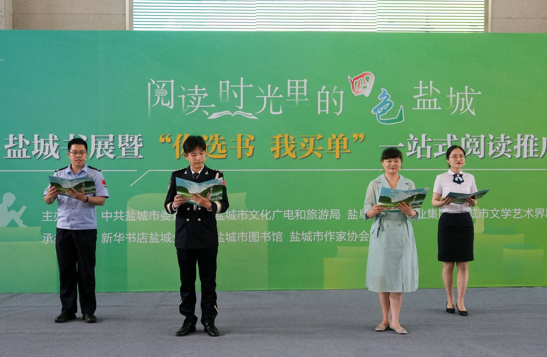 打开一本好书,邂逅一段故事,收获一份感动。活动中,一个个精彩节目将现场气氛推向高潮。《红色血脉》通过穿越时空的对话,生动讲述盐城籍抗日名将陈中柱和赵敬之的故事,展现他们为民族独立而英勇奋斗的崇高精神。此外,《白色海盐》《绿色天地》和《蓝色畅想》等节目,分别从不同角度展现“四色盐城”丰富的历史文化底蕴和蓬勃的发展活力。