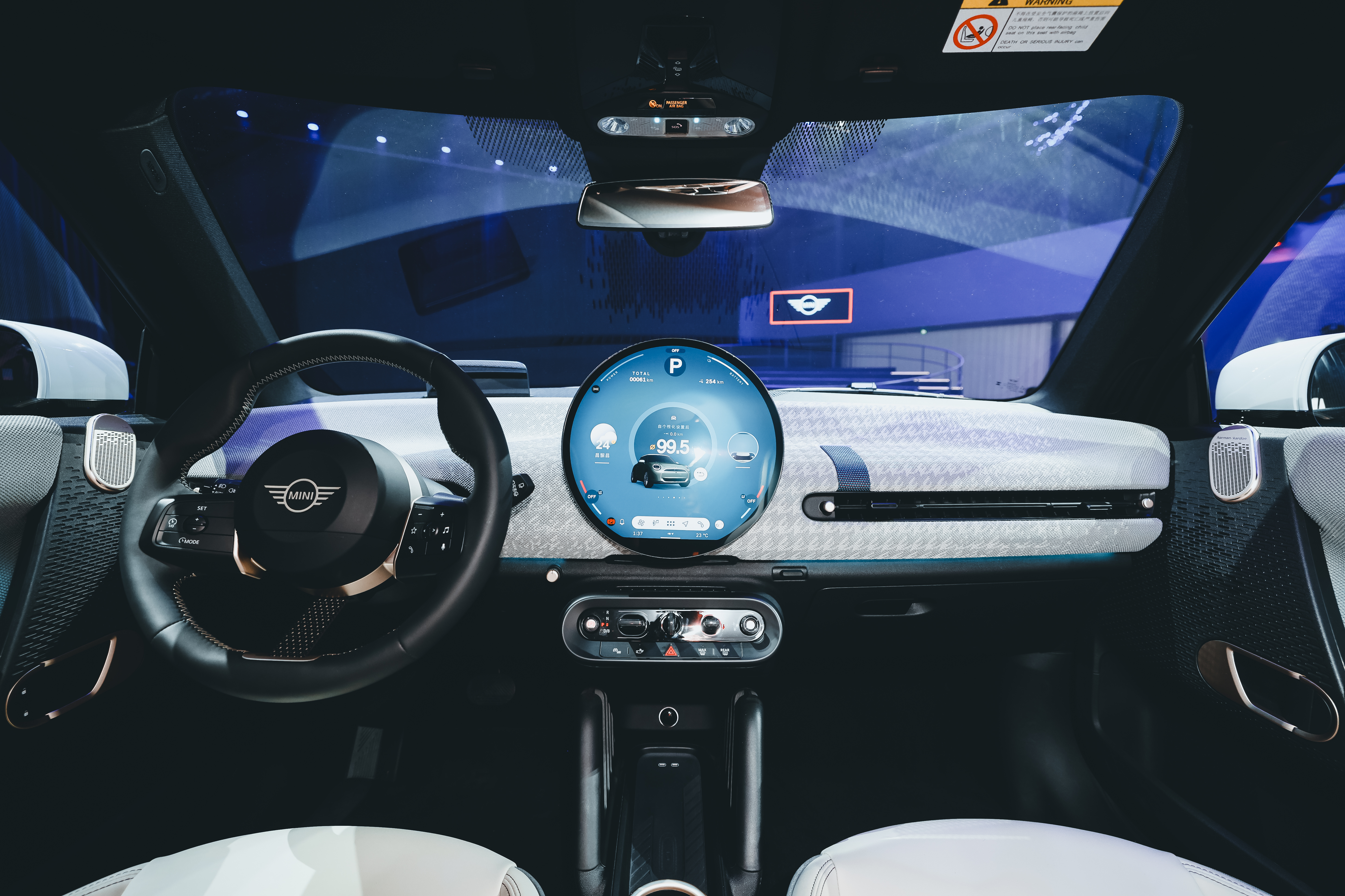 车内最醒目的当属行业首推的圆形OLED中控屏,拥有独特的外貌和更加鲜艳润泽的色彩,240毫米直径刚刚好,超薄的屏幕精致又坚固。第九代MINI操作系统的界面充满了整个圆屏,所有元素与圆屏高度适配,操作简单观感舒适就像智能手机一样,并洋溢着浓浓MINI调性。7种身临其境的“MINI体验模式”可供随意选择,不但会调整车辆性能,还融入了新的MINI声效世界,以及精巧布置的光影。