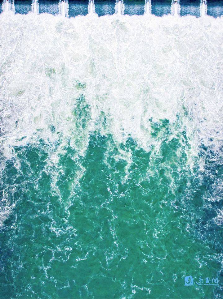 7月8日,从高空俯瞰嶂山闸泄洪,场面十分壮观。