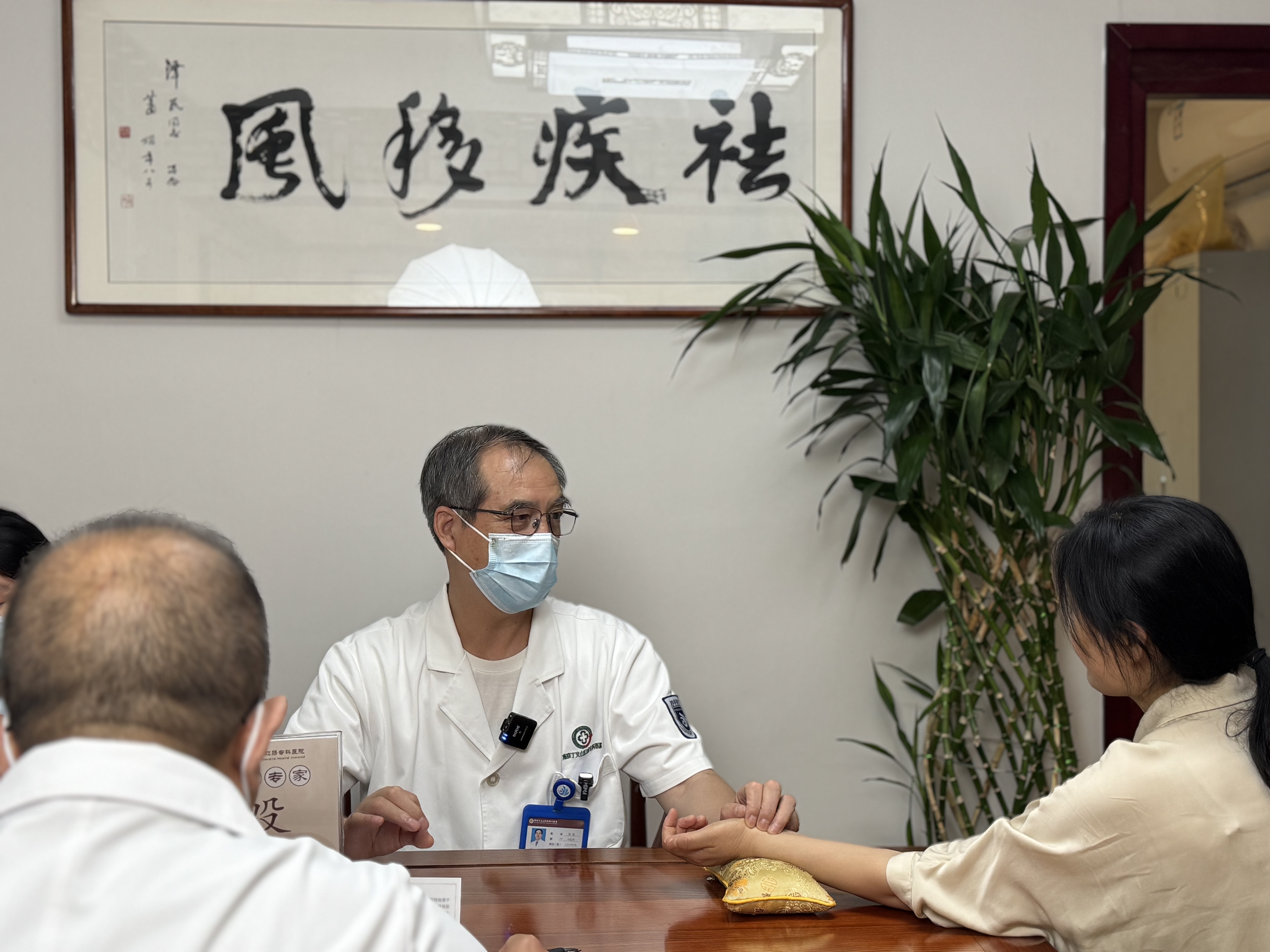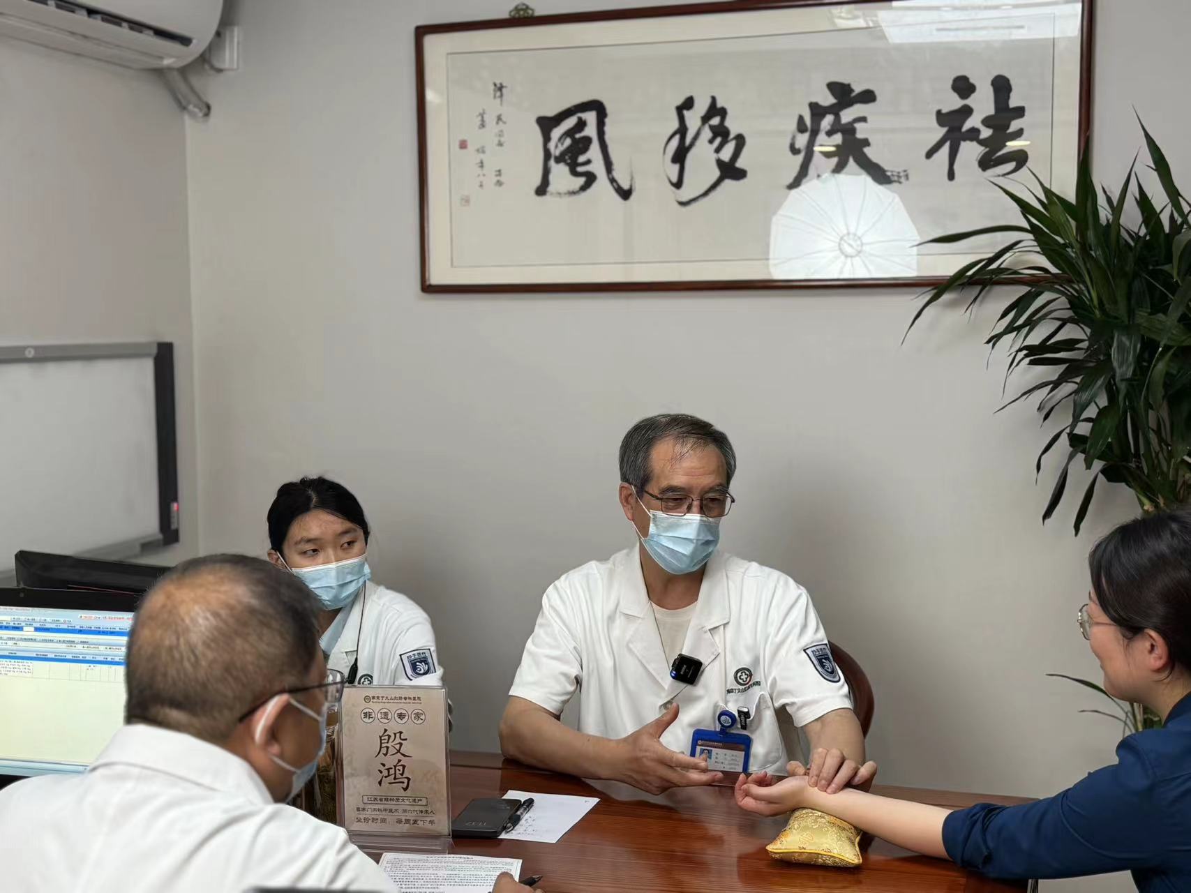 殷教授(右二)在坐诊