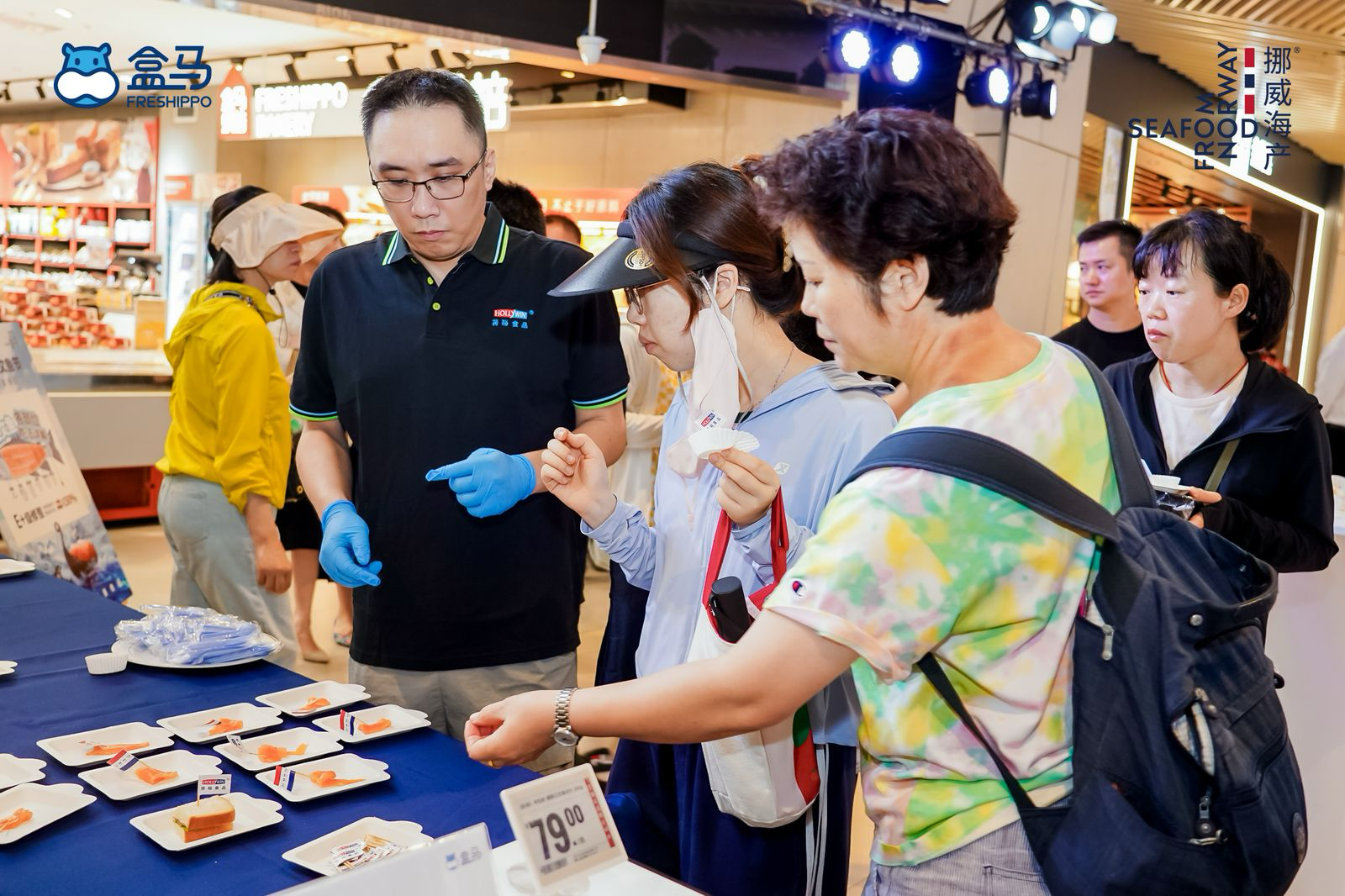 盒马第一届挪威可生食三文鱼节在上海盒马鲜生新江湾店开幕