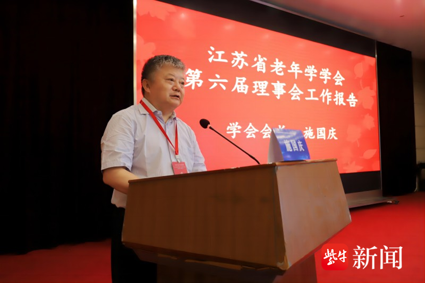 江苏省老年学学会第六届理事会会长施国庆做了工作报告。施国庆感谢社会各界对学会的关心和支持,他表示,学会紧贴老龄事业、老年产业和老年医学实际,开展老年学研究,为党委和政府决策谋篇献策,为社会出谋划策,为老年朋友提供服务,连续三年获得省社科联“模范学术团体”称号。学会在坚持学术研究、推进老年事业持续发展、搭建平台发挥高校科研优势、积极开展全省老年健康普及及促进专题活动、发挥各专委会作用、加强自身建设等方面做了大量工作,取得良好成绩与效果。