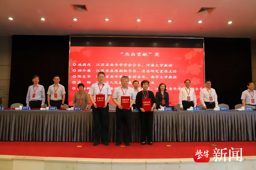 会议期间,大会表彰了一批先进个人和集体。施国庆、顾介康等4位同志获“杰出贡献奖”;李梦凡、谢玮等16人获第三届“江苏省老年学青年学者奖”;王少康、张亚男等30人获“先进工作者”奖;慢性病专业委员会、老年健康教育与促进专业委员会等11家分支机构获“优秀专业委员会”奖;无锡老龄科学研究中心等9家单位获“优秀研究与培训基地”奖。大会还向南京大学等36家单位授予江苏省老年学研究与培训基地称号,并成立江苏省老年学学会学术委员会。