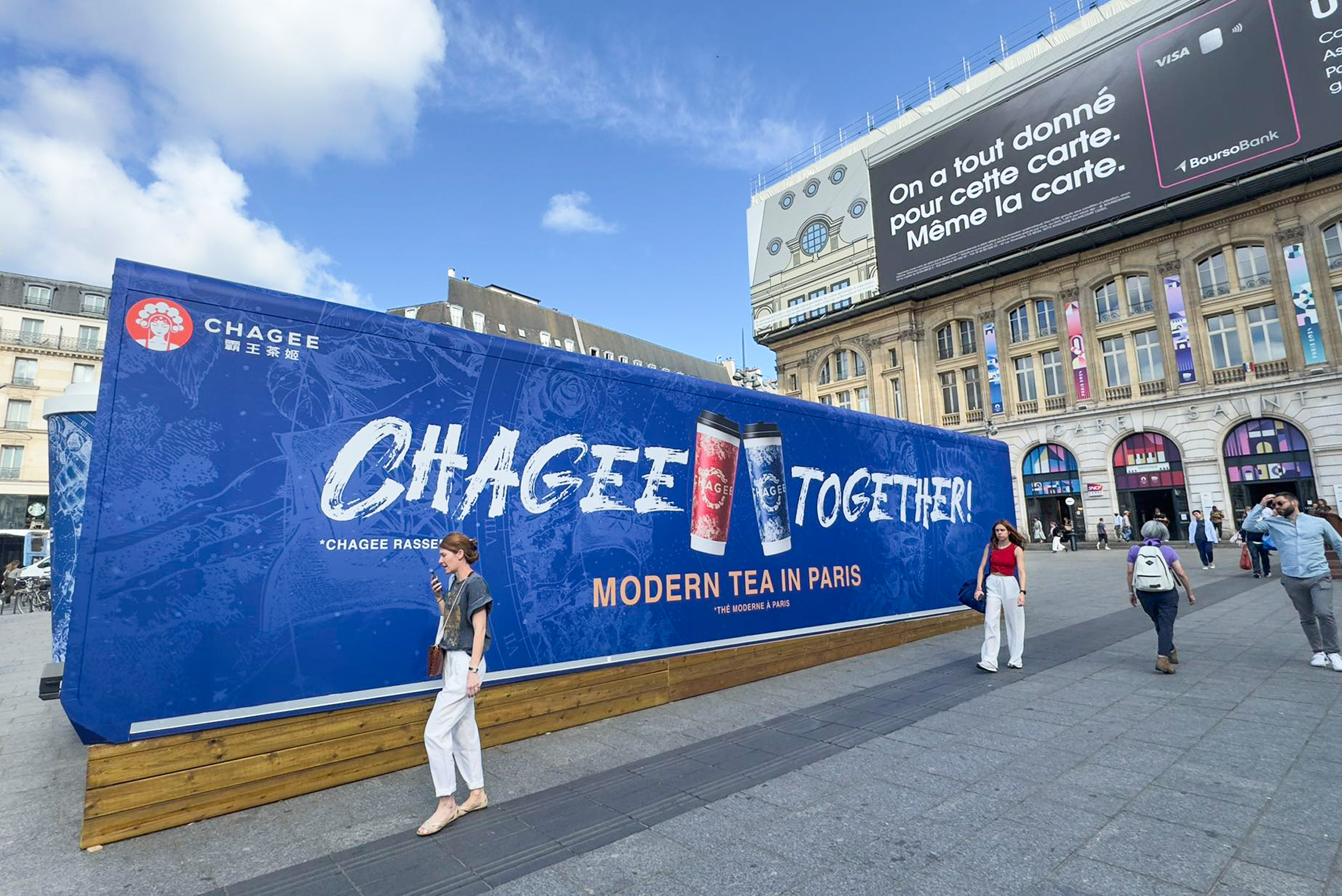 霸王茶姬巴黎TEA BAR,落址在欧洲第三大繁忙的铁路车站——圣拉扎尔火车站,莫奈曾以该车站为灵感创作画作。临近巴黎盛会开幕,这里成为法国人流量最密集的地段之一,吸引了来自世界各地的友人。