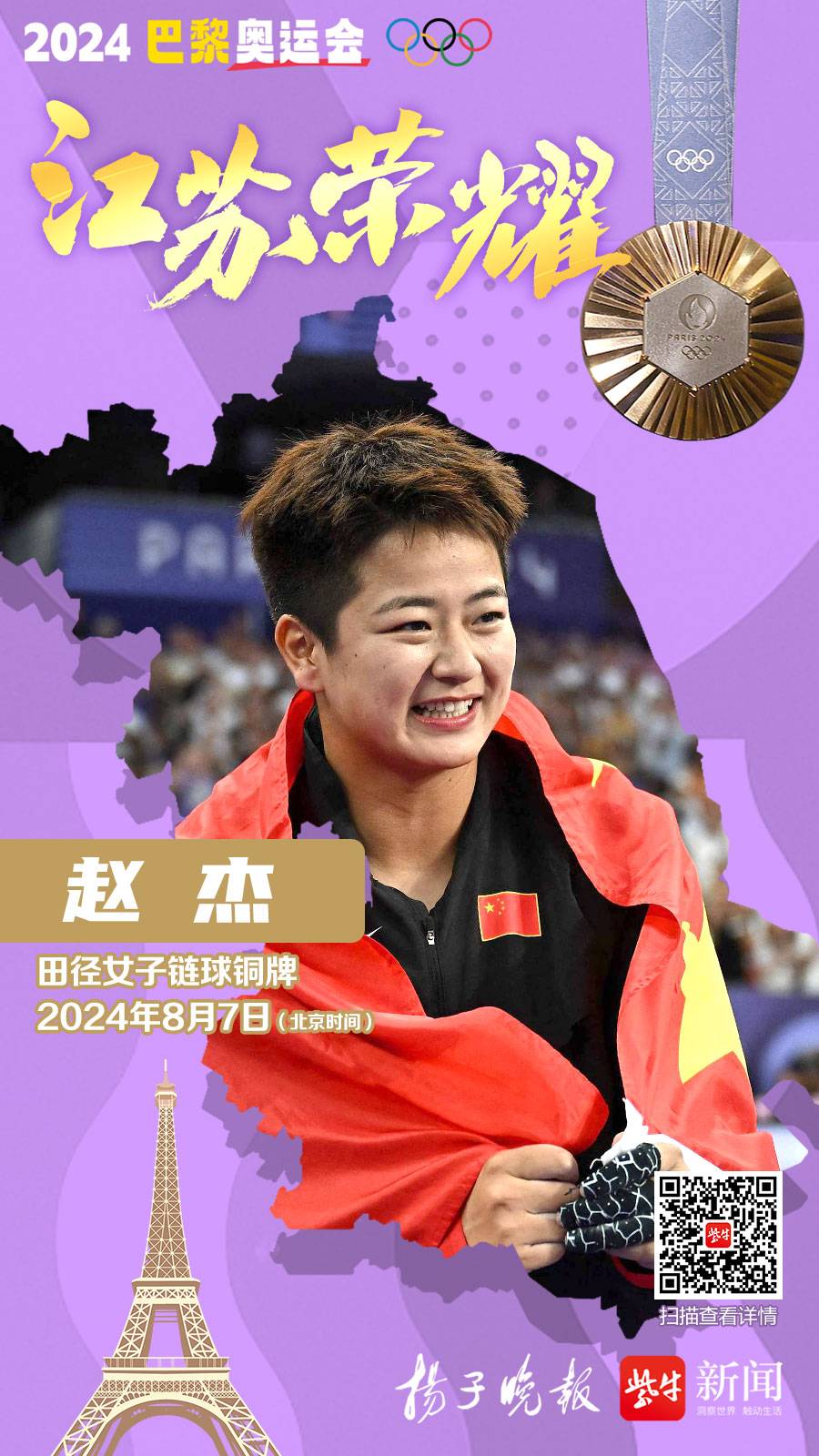 北京时间7日凌晨,在巴黎奥运会女子链球决赛中,来自苏州昆山的21岁小将赵杰以74米27的成绩获得铜牌。这是中国队在本届奥运会田径项目中收获的第三枚奖牌。这也是中国代表团在该项目连续五届奥运会获得奖牌!