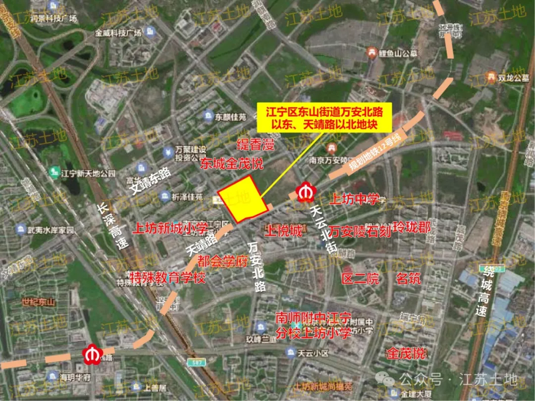 位于江宁上坊青龙山新城板块的2024G34地块面积3.6万平方米,容积率为2.0,起拍价5.75亿元,起拍楼面价为8020元/㎡。该板块上一次出让宅地是在2019年,目前片区内仅雅居乐雅郡兰庭在售,住宅供应较为稀缺。地块东侧紧邻规划地铁12号线上坊站,未来交通便捷。
