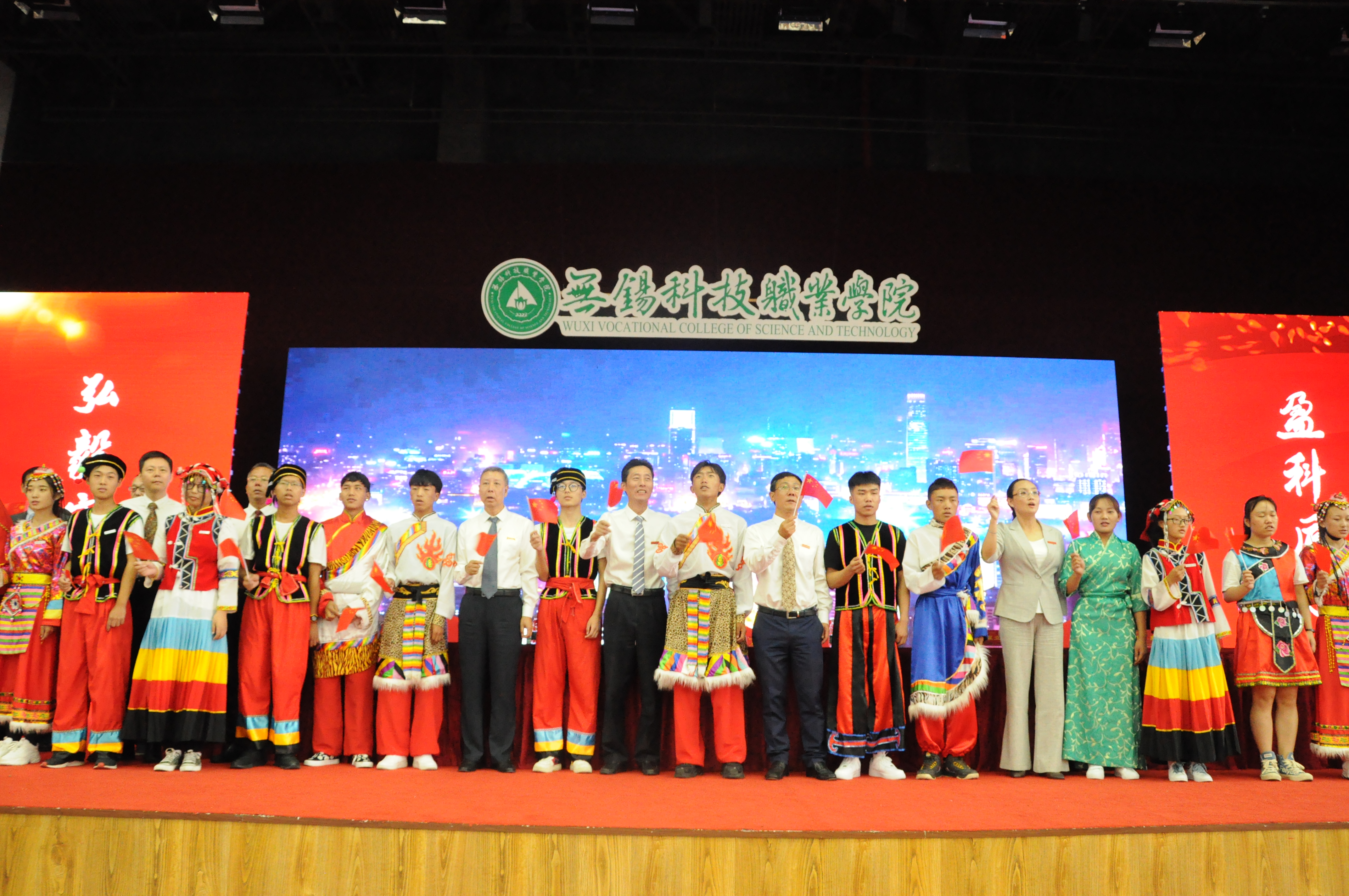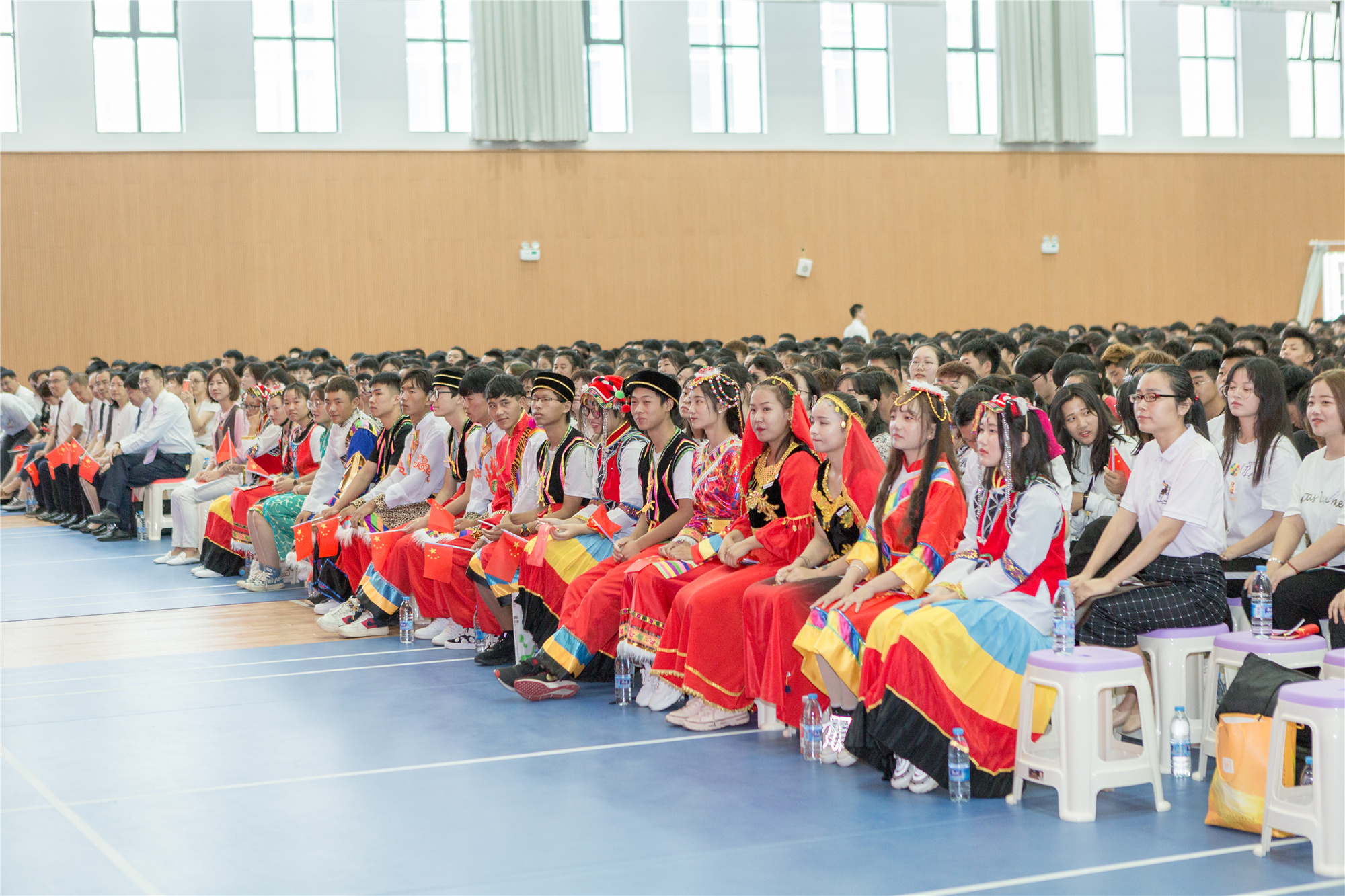 典礼最后,2019级少数民族学生穿着民族服装走上舞台,和全体校领导以及现场全体师生共同高歌《歌唱祖国》,向祖国深情告白,喜迎新中国成立70周年。
