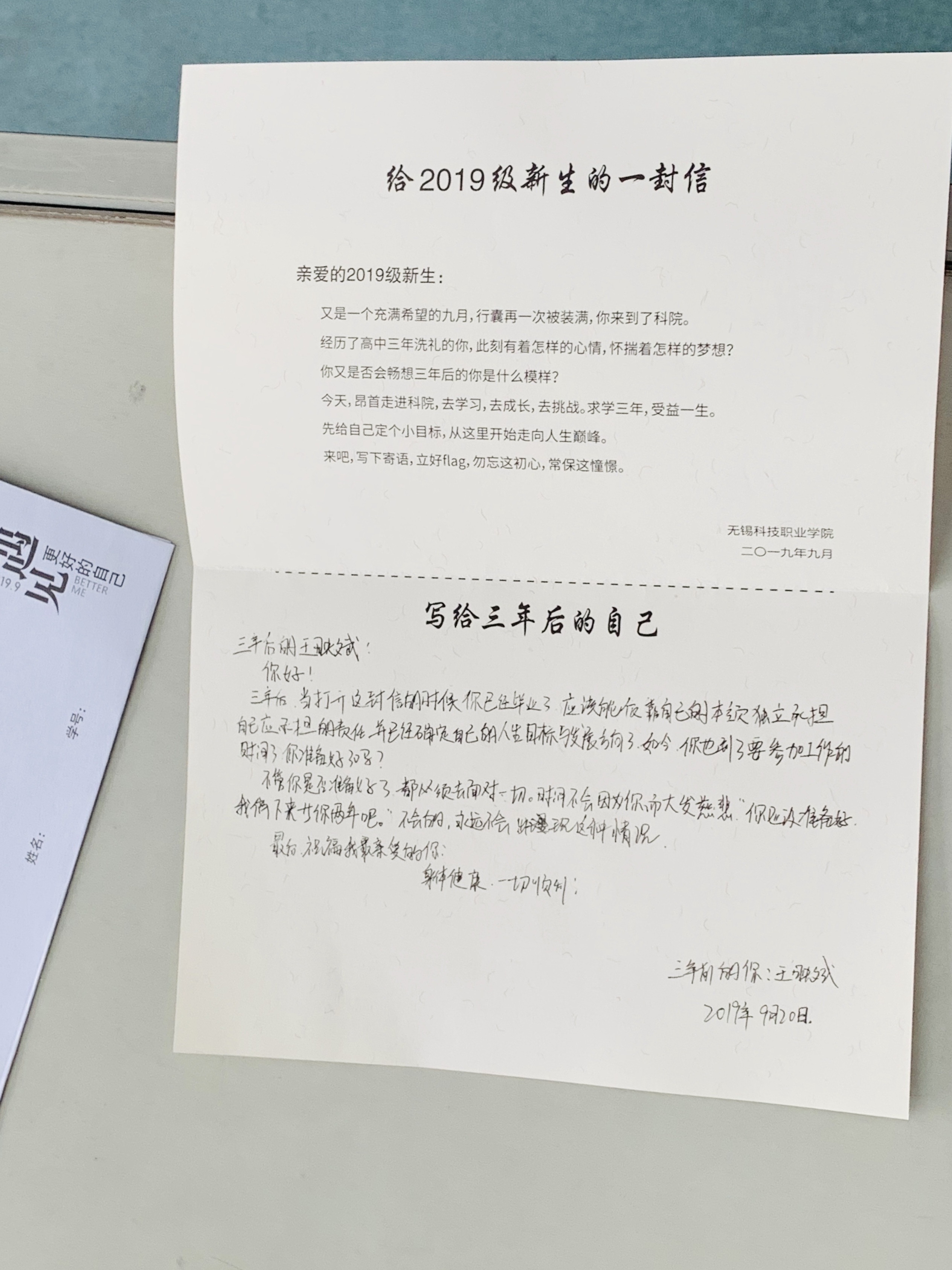 给三年后的自己写一封信 ,无锡科技职业学院开学有“礼”有能量