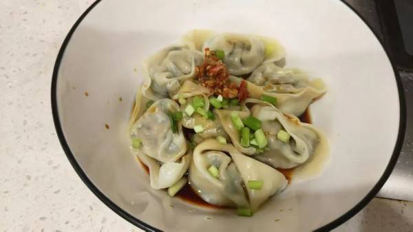 馄饨捞出沥干水分,放入碗中,放入酱油、蚝油、香油、陈醋、辣椒油、香菜等,将馄饨拌匀。