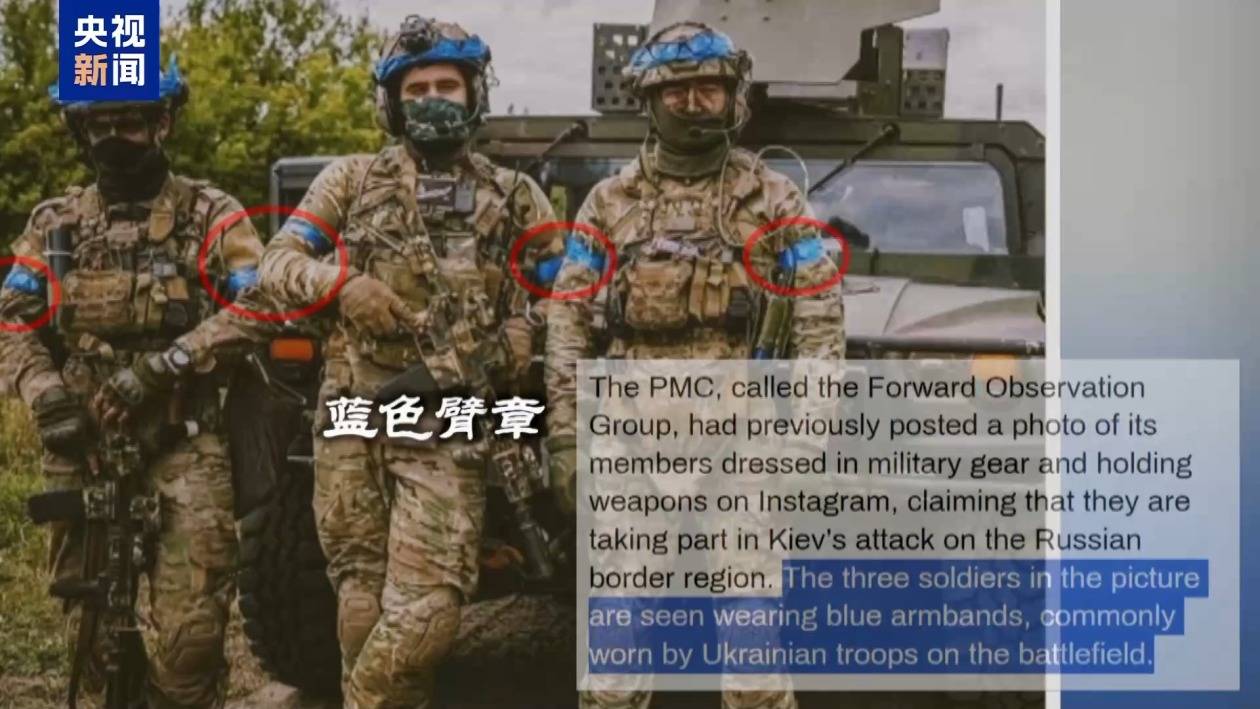 今日俄罗斯网站援引俄罗斯外交部的声明称,“前线观察团”照片中的三人都佩戴了蓝色臂章,而乌军士兵进入库尔斯克佩戴的战场标志就是蓝色臂章。