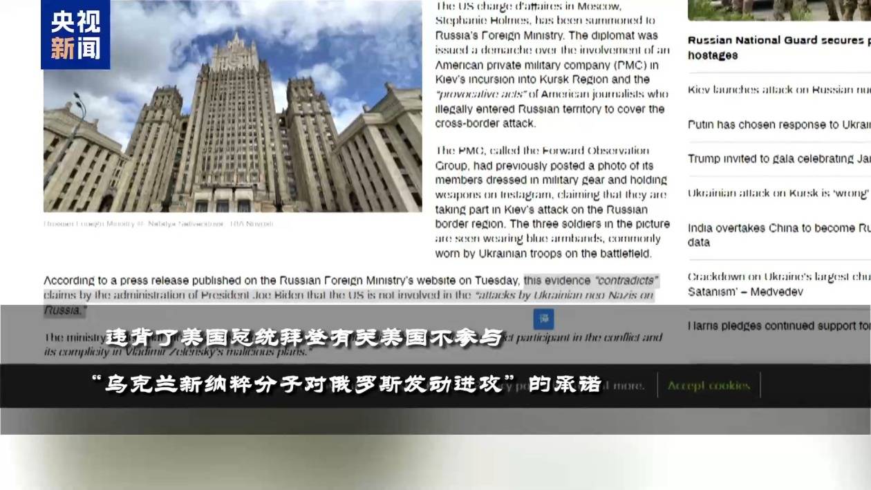 这表明美国直接参与了俄乌冲突,也违背了美国总统拜登有关美国不参与“乌克兰新纳粹分子对俄罗斯发动进攻”的承诺。