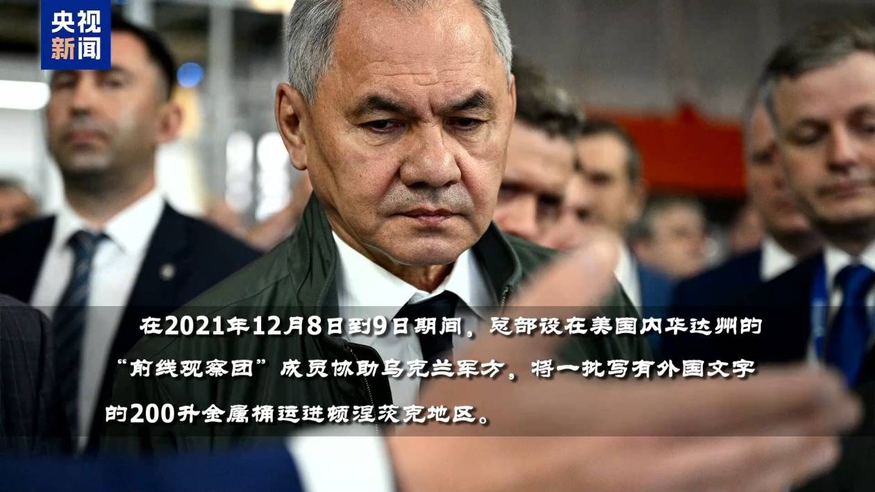 时任俄罗斯国防部长绍伊古在俄国防部扩大会议上称,在2021年12月8日到9日期间,总部设在美国内华达州的“前线观察团”成员协助乌克兰军方,将一批写有外国文字的200升金属桶运进顿涅茨克地区。