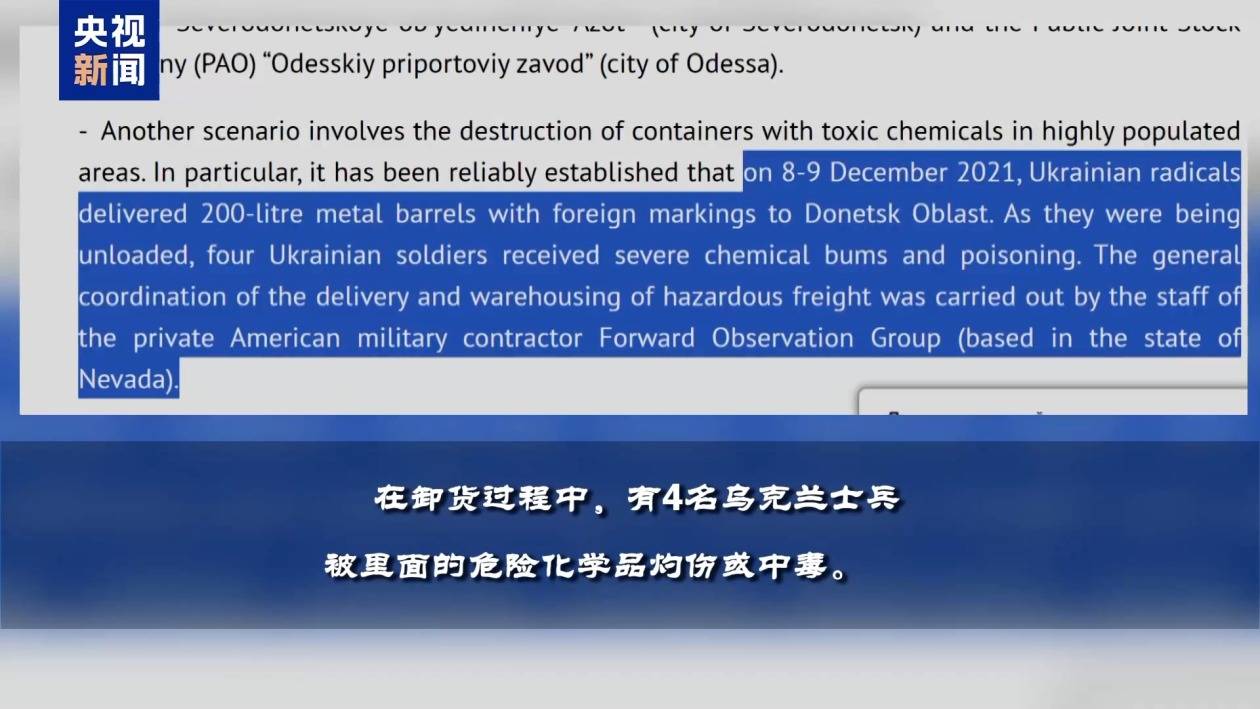 在卸货过程中,有4名乌克兰士兵被里面的危险化学品灼伤或中毒。